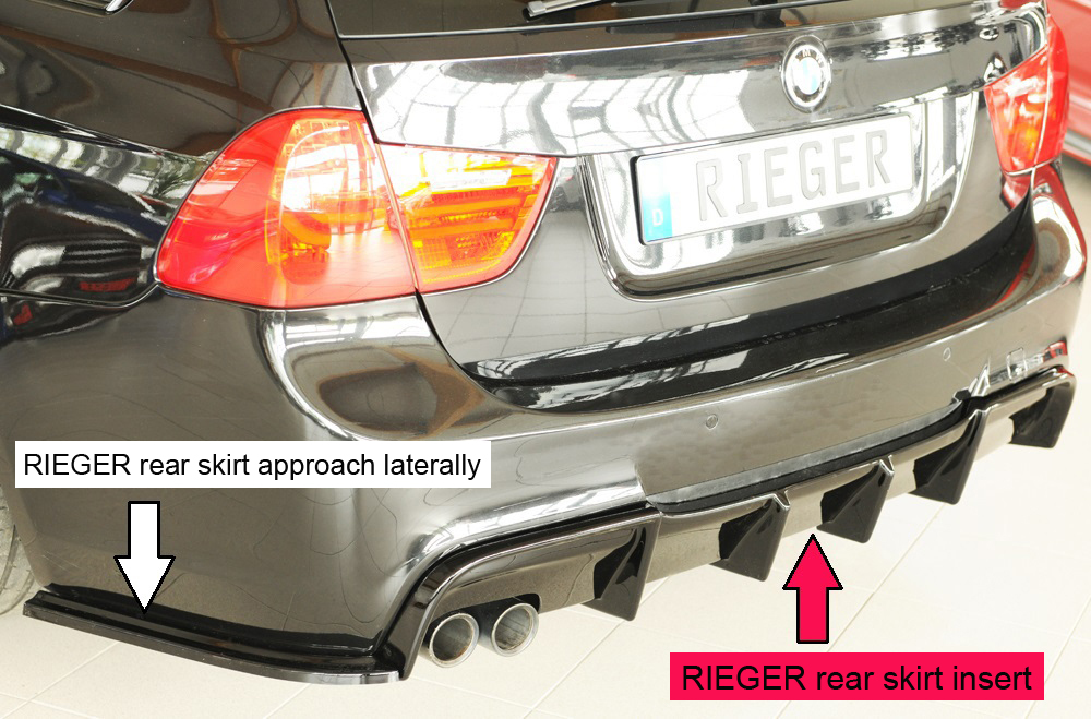 Der Rieger Heckeinsatz verleiht dem Heck Ihres BMW 3er E91 Touring LCI eine sportlich-elegante Optik und sorgt für eine harmonische Integration in das M-Paket-Design. Hergestellt aus hochwertigem ABS-Material garantiert der Einsatz hohe Passgenauigkeit, Langlebigkeit und Witterungsbeständigkeit. Der Heckeinsatz ist für Fahrzeuge mit original Doppelendrohr links (2x72 mm Ø) ausgelegt und wird inklusive Montagezubehör und Gutachten geliefert. Das Produkt ist eintragungsfrei – eine separate Eintragung ist nicht erforderlich.