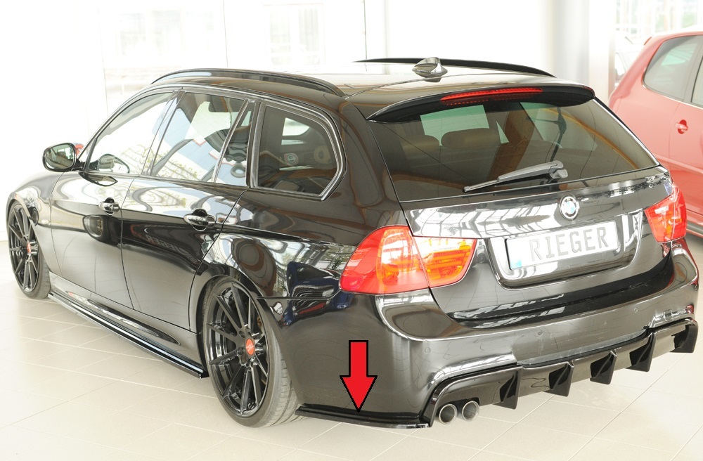 Der hochwertige Rieger Heckschürzenansatz in der Ausführung seitlich links wurde speziell für die originale Heckschürze des BMW 3er E90 LCI angepasst. Gefertigt aus robustem ABS-Material überzeugt das Bauteil mit hoher Passgenauigkeit und Stabilität. Der Ansatz ist für Fahrzeuge mit M-Paket konzipiert und wird inklusive Gutachten und Montagezubehör geliefert. Sie erhalten den Heckschürzenansatz wahlweise in den attraktiven Oberflächenvarianten Matt Schwarz oder Glanz Schwarz. Das Bauteil wird unlackiert geliefert, sofern keine Finish-Oberfläche (ABS/schwarz-glänzend oder ABS/schwarz-matt) gewählt wurde. Dank der mitgelieferten Unterlagen ist keine Eintragung erforderlich. Perfekt für ein sportliches und sauberes Erscheinungsbild am Heck Ihres 3er E90.