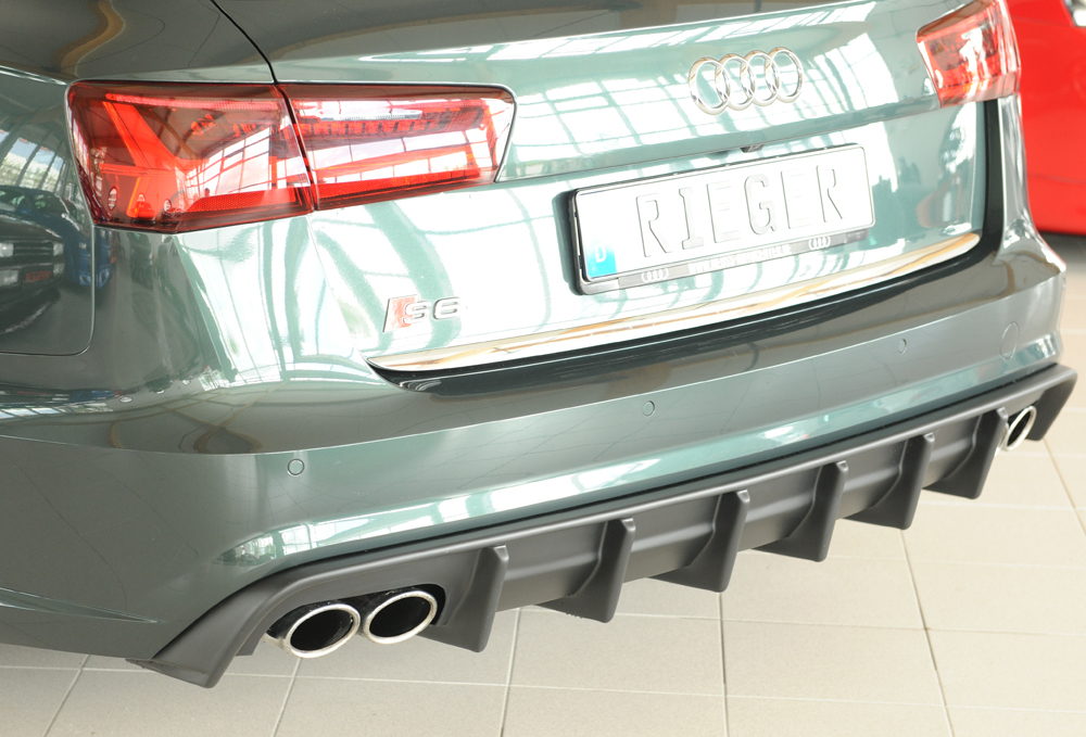 Der hochwertige Rieger Heckeinsatz aus robustem ABS-Material ist die ideale Ergänzung für den sportlichen Look Ihres Audi A6 S6 (4G/C7) Avant ab Baujahr 09/2014. Entwickelt für die originale S-Line Heckschürze und für Fahrzeuge ohne Anhängekupplung, überzeugt dieser Heckansatz mit perfekter Passform und markanter Optik. Sie erhalten den Heckdiffusor wahlweise in der Variante Unlackiert oder Glanz Schwarz – je nach gewünschtem Finish. Der Heckeinsatz ist für originale Doppelendrohre links und rechts mit den Maßen 4x90x72 mm (oval) ausgelegt und wird inklusive Gutachten geliefert. Das Produkt ist eintragungsfrei, eine separate Abnahme ist nicht erforderlich. Ideal für alle, die ihren A6 oder S6 optisch aufwerten und gleichzeitig aerodynamische Vorteile genießen möchten.