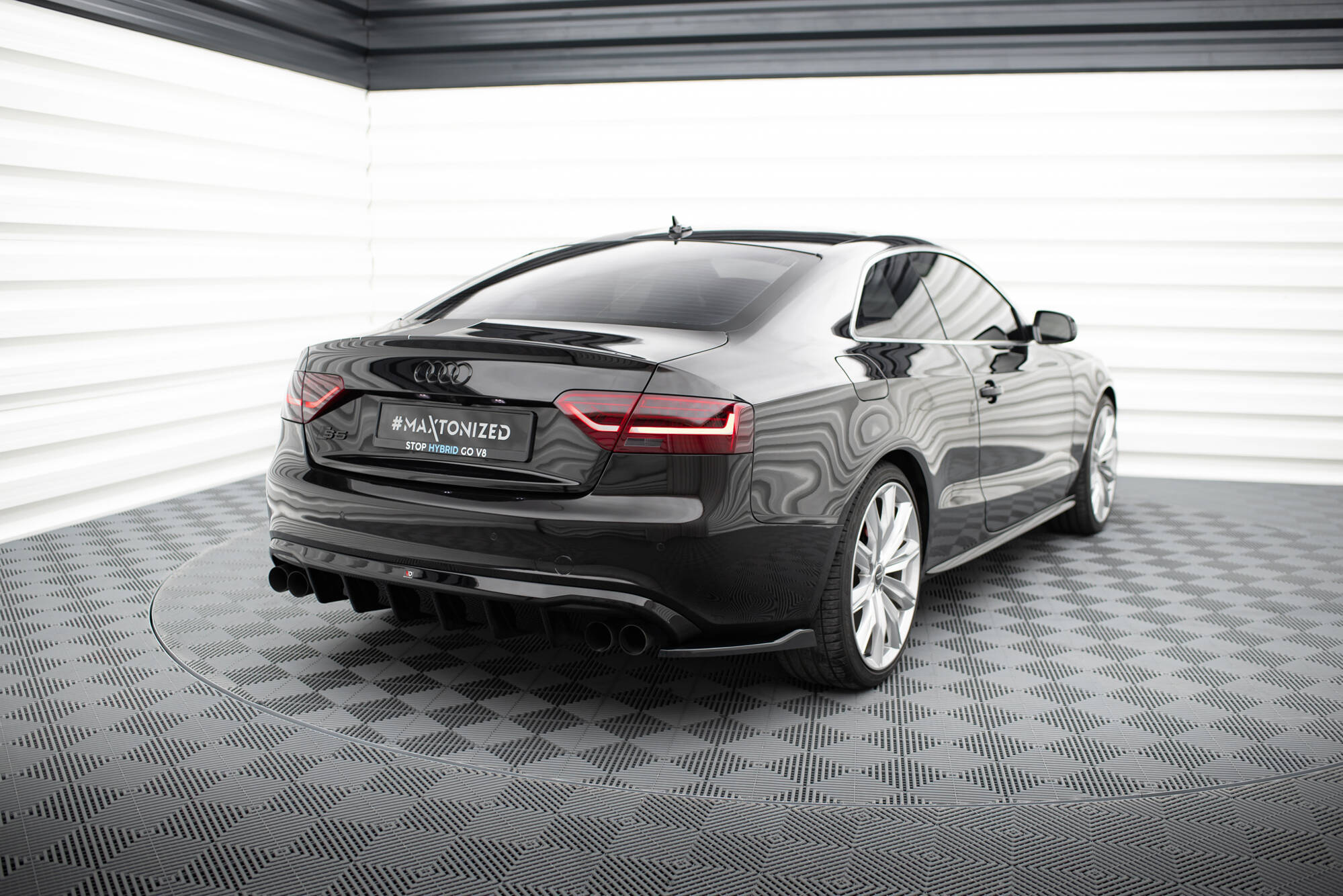 Dieser hochwertige Heck Ansatz Flaps Diffusor V.2 ist speziell passend für Audi S5 / A5 S-Line Coupe / Cabriolet 8T gefertigt und verleiht dem Fahrzeug ein sportlich-aggressives Heckdesign. Gefertigt aus robustem ABS-Kunststoff überzeugt der Diffusor durch hohe Passgenauigkeit und Langlebigkeit. Durch das formstabile Material wird die aerodynamische Performance des Fahrzeugs optimiert und das Erscheinungsbild deutlich aufgewertet. Die Oberfläche in Schwarz Hochglanz integriert sich harmonisch in das Fahrzeugdesign und sorgt für eine exklusive Optik. Dank des beigelegten Gutachtens (ABE) ist keine gesonderte Eintragung erforderlich, was die Montage besonders einfach macht. Ideal für alle, die Wert auf Qualität, Design und Funktion legen.