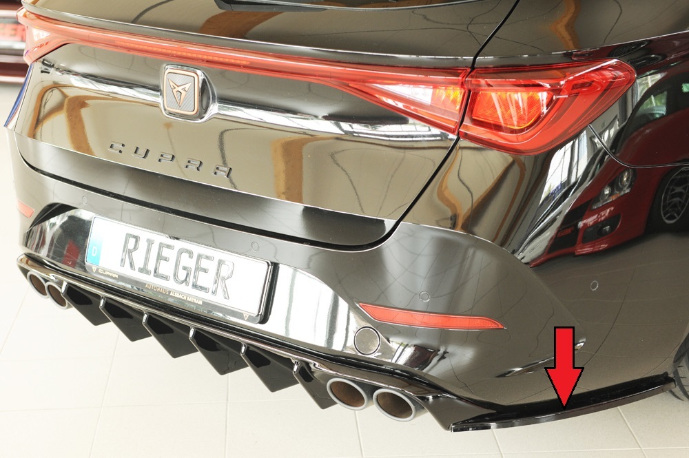Der hochwertige Rieger Heckschürzenansatz für die rechte Seite ist die ideale Ergänzung für die originale Cupra-Heckschürze. Er besteht aus robustem ABS-Material und überzeugt durch präzise Passgenauigkeit und sportliches Design. Die Varianten Unlackiert und Glanz Schwarz bieten Ihnen maximale Gestaltungsfreiheit für Ihr Fahrzeug. Dank des mitgelieferten Gutachtens ist keine zusätzliche Eintragung erforderlich. Der Ansatz ist speziell passend für Cupra Leon KL 5-türig ST/Sportstourer (09/2020–06/2024, bis Facelift) und verleiht dem Heck eine dynamische, exklusive Optik. Das Material ABS sorgt für hohe Stoßfestigkeit und Langlebigkeit im täglichen Einsatz.