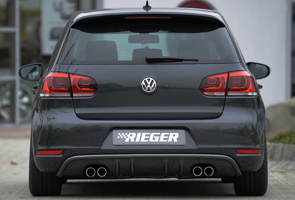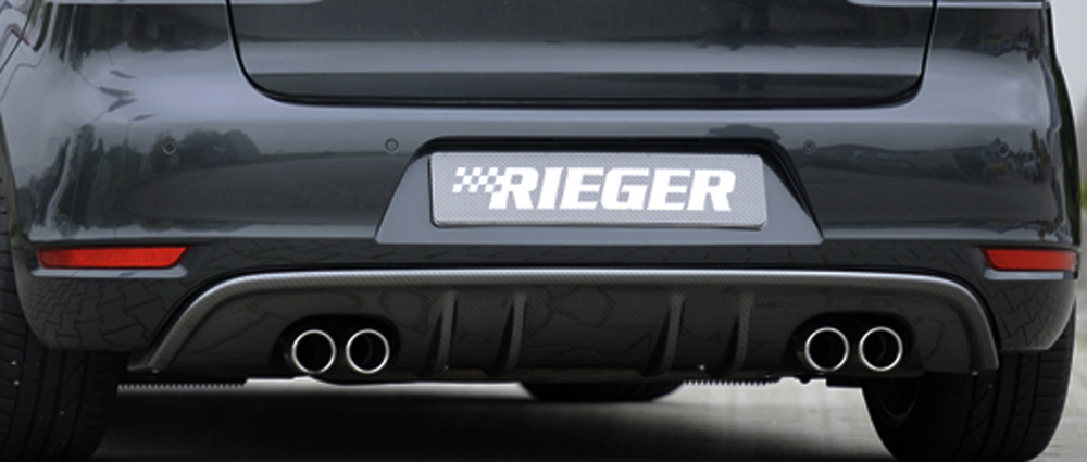 Der Rieger Heckeinsatz mit 2 Doppelfinnen ist die ideale Tuning-Ergänzung, um das Heckdesign Ihres Fahrzeugs sportlicher und markanter zu gestalten. Der hochwertige Heckeinsatz besteht aus robustem ABS-Material und überzeugt durch eine präzise Passform sowie lange Haltbarkeit. Passend für Fahrzeuge mit Doppelendrohr links und rechts, wird dieser Heckeinsatz inklusive Montagezubehör und Gutachten geliefert. Die Montage gestaltet sich unkompliziert und sorgt für ein perfektes Resultat direkt an Ihrem VW Golf 6 ab Baujahr 10/2008.