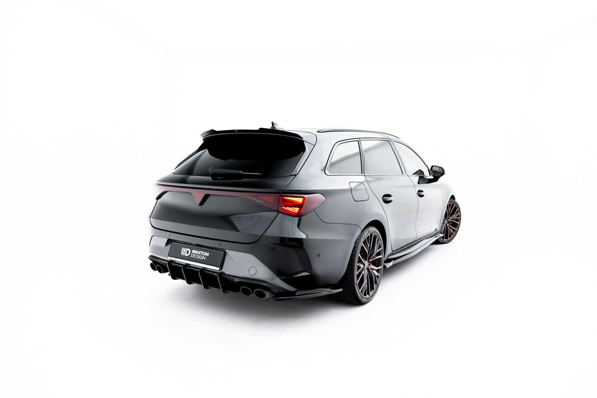 Der Heck Ansatz Flaps Diffusor V.4 passend für Cupra Leon ST Mk1 Facelift verleiht dem Fahrzeugheck ein dynamisches, aggressives Erscheinungsbild und verbessert gleichzeitig die Aerodynamik. Gefertigt aus robustem ABS-Kunststoff, sorgt der Diffusor für eine dauerhafte Formstabilität und eine präzise Passform. Das Bauteil wird unlackiert geliefert und kann individuell an das Fahrzeugdesign angepasst werden. Dank des mitgelieferten Materialgutachtens ist eine reibungslose Abnahme problemlos möglich. Diese hochwertigen Heck Ansatz Flaps Diffusoren von Maxton Design fügen sich nahtlos ins Fahrzeugdesign ein und ermöglichen eine sportlich-elegante Optik.