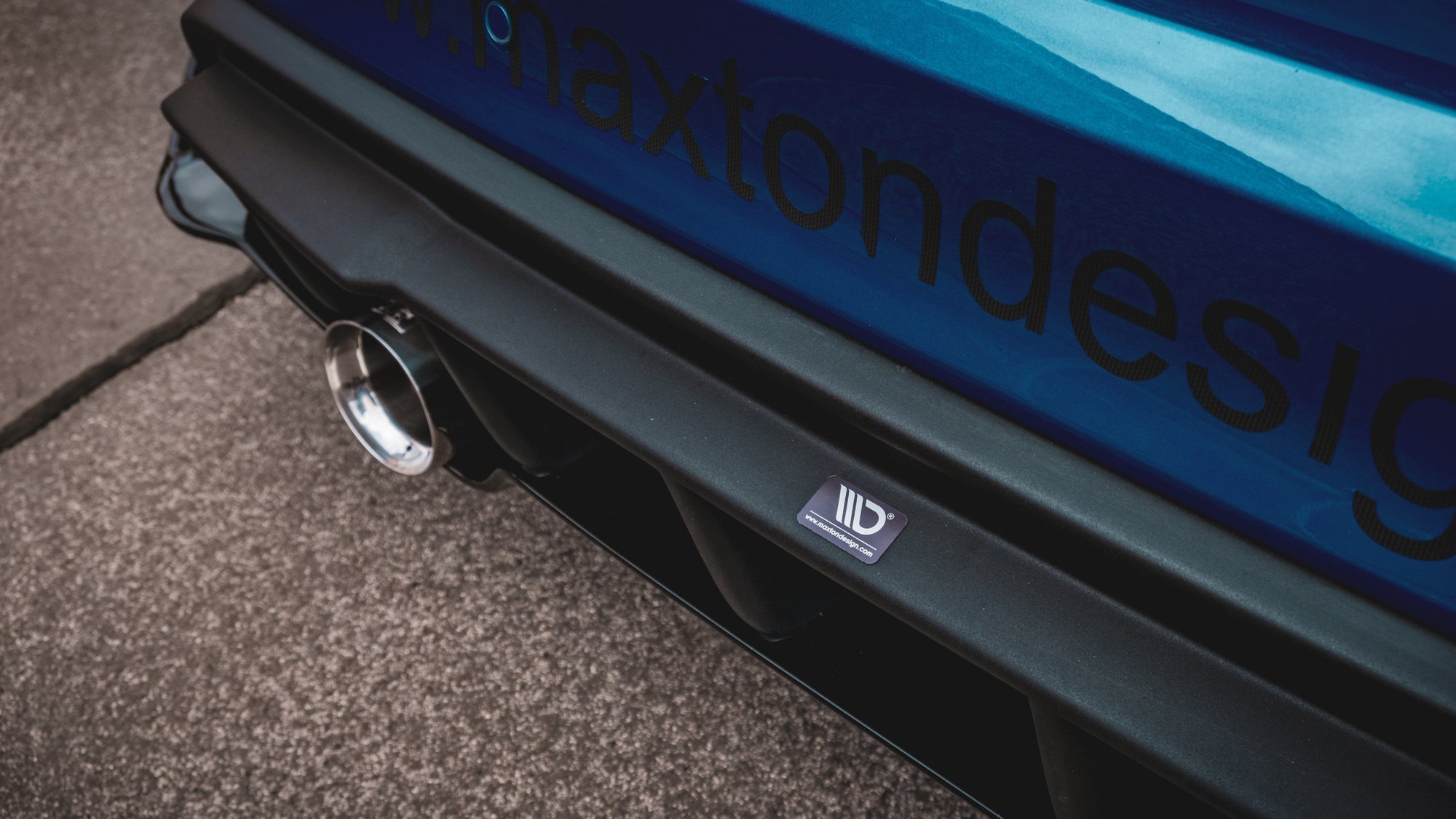 Hinweis: Auspuff ist gegen Aufpreis erhältlich. Die Heckschürze ist nur mit dem angegebenen Auspuff kompatibel. Der originale Diffusor Heck Ansatz muss vor dem Zusammenbau gelocht werden. Die A-Fläche ist in der Farbe Ihrer Wahl lackierbar.