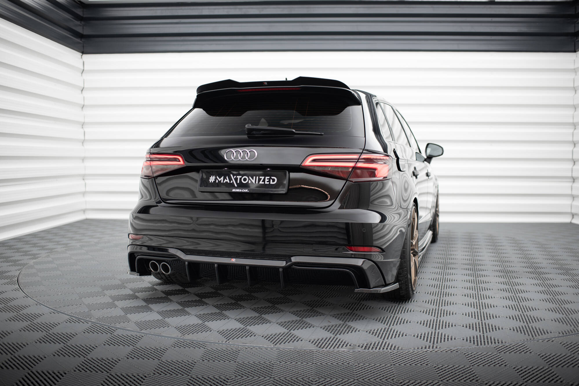 Der Diffusor Heck Ansatz passend für Audi A3 S-Line Sportback 8V Facelift (Doppelauspuff li.) verleiht Ihrem Fahrzeug eine markante und sportliche Heckansicht. Gefertigt aus hochwertigem ABS-Kunststoff, überzeugt dieser Heckdiffusor durch Langlebigkeit, Witterungsbeständigkeit und perfekte Passform. Er wird als Ersatz für den originalen Heckansatz montiert und fügt sich nahtlos in das Design des Fahrzeugs ein. Dank beiliegender ABE (eintragungsfrei) ist keine zusätzliche Eintragung erforderlich, wodurch der Einbau besonders unkompliziert ist. Mit diesem Diffusor unterstreichen Sie den dynamischen Look Ihres Audi A3 und verbessern zugleich die Aerodynamik des Hecks – ideal für Designliebhaber und Tuning-Fans.