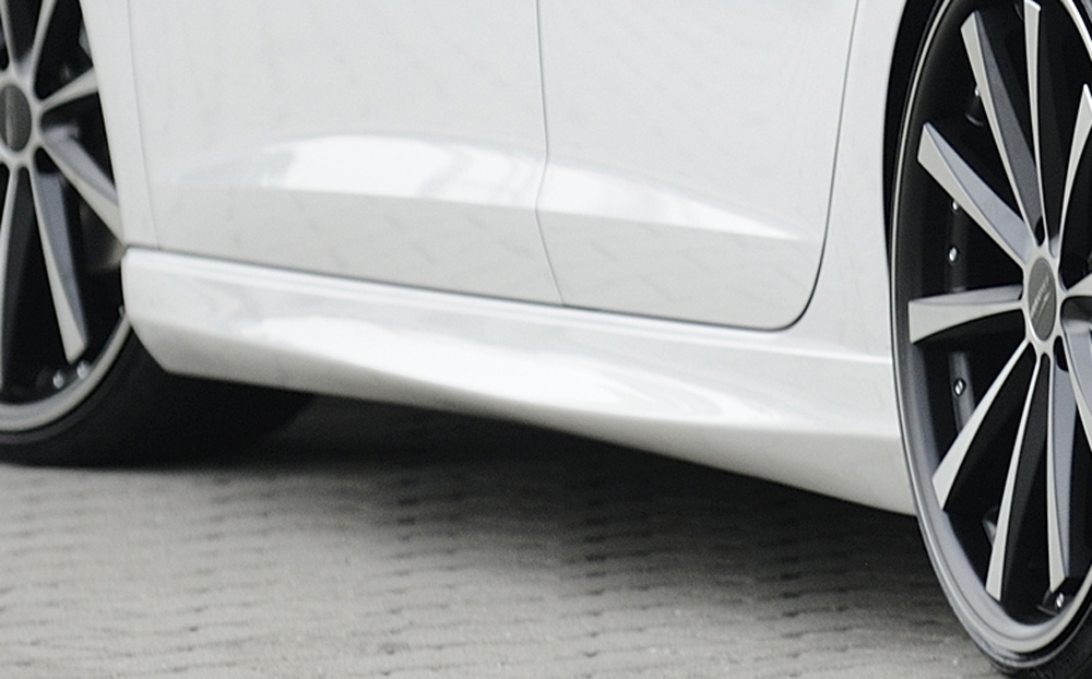 Der hochwertige Rieger Seitenschweller links aus robustem ABS-Material ist passend für Seat Leon (5F) 5-türig (ST/Kombi) ab Baujahr 10/2012. Dieses aerodynamisch optimierte Bauteil verleiht Ihrem Fahrzeug eine sportlich-dynamische Seitenlinie und sorgt gleichzeitig für eine verbesserte optische Tieferlegung. Dank des beiliegenden Montagezubehörs ist die Installation einfach und passgenau. Das Produkt wird mit einem Gutachten geliefert und ist somit eintragungsfrei – umständliche TÜV-Abnahmen entfallen.