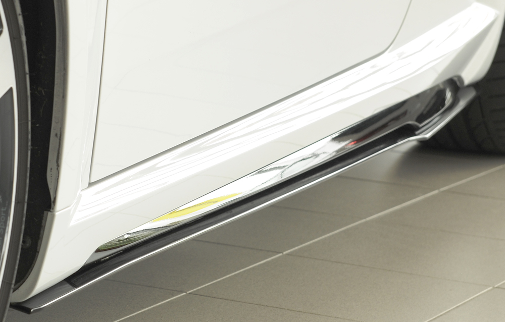 Der Rieger Seitenschweller ist speziell für Fahrzeuge mit S-Line Exterieur entwickelt und fügt sich nahtlos in das Design des Audi TT RS Roadster ein. Dank des mitgelieferten Montagezubehörs lässt sich der Anbauteil einfach und sicher montieren. Optional ist dieses Modell auch in Schwarz-glänzend erhältlich (Aufpreis, Art.-Nr. 00510179, gilt für 2 Stück).
