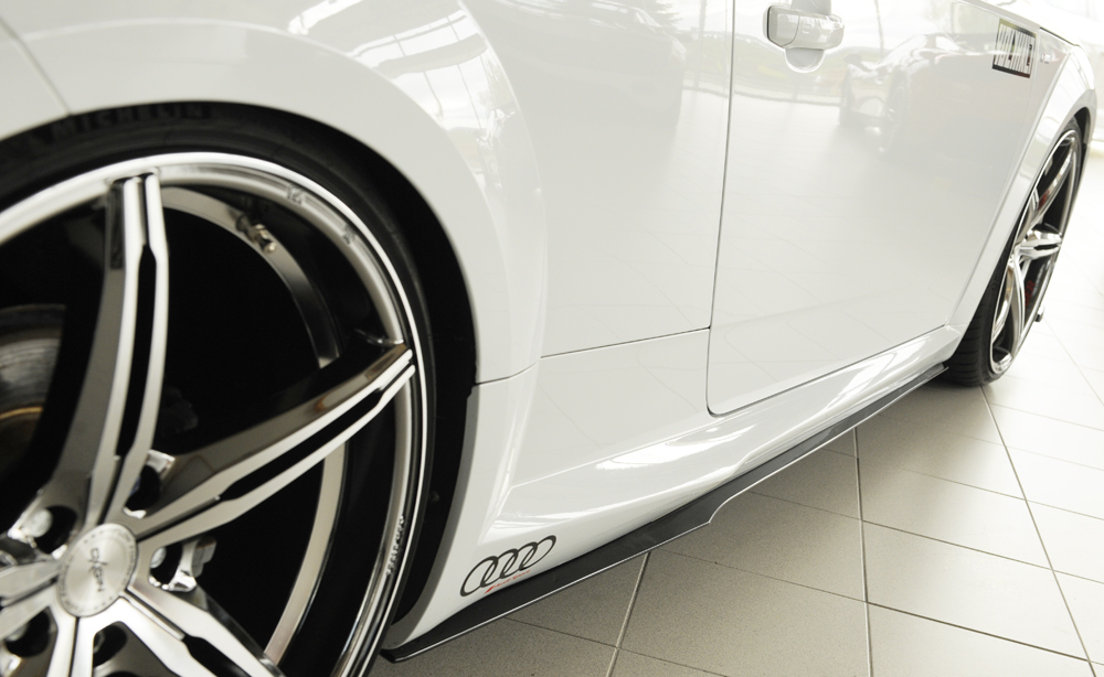 Der hochwertige Rieger Seitenschweller rechts ist speziell passend für Audi TT (8J-FV/8S) Coupé entwickelt und sorgt für eine sportlich-dynamische Optik Ihres Fahrzeugs. Gefertigt aus robustem ABS-Kunststoff überzeugt dieser Schwelleransatz durch seine perfekte Passform und eine lange Lebensdauer. Der Einbau erfolgt an den originalen Befestigungspunkten und ist dank beiliegendem Montagezubehör einfach umsetzbar. Das Produkt wird mit einem Gutachten geliefert, sodass keine Eintragung erforderlich ist. Für ein stimmiges Gesamtbild ist der passende linke Seitenschweller separat im Zubehör erhältlich. Gegen Aufpreis kann dieser Seitenschwelleransatz auch in Schwarz-glänzend geliefert werden (Art.-Nr. 00510173, gültig für 2 Stück).