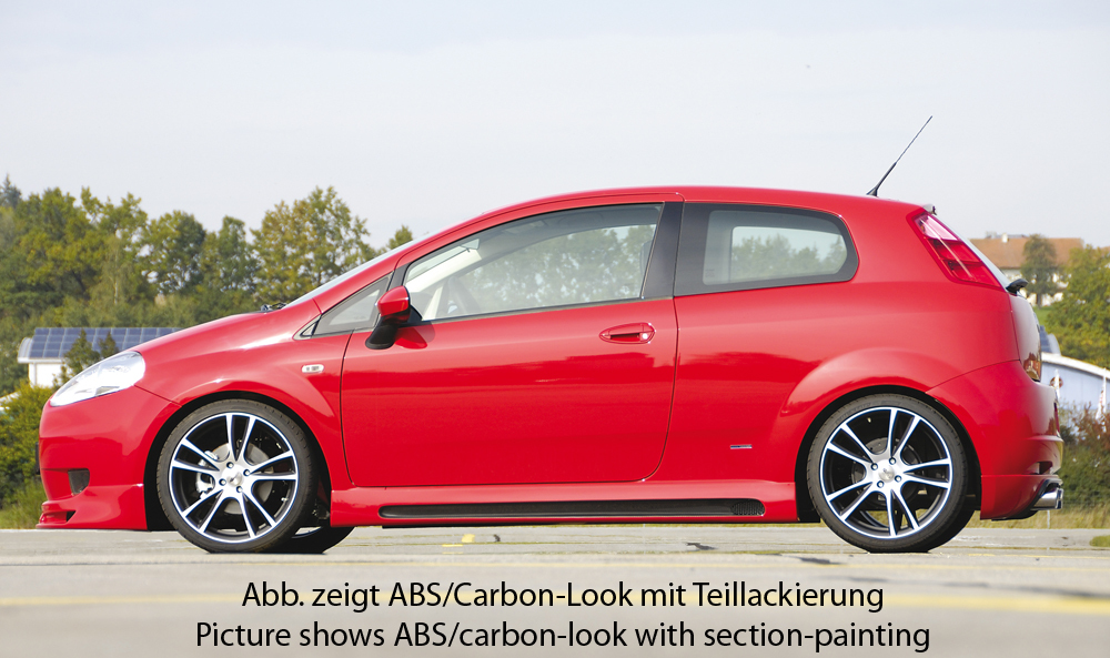 Der Rieger Seitenschweller für die linke Seite ist die ideale Ergänzung für einen sportlichen Auftritt Ihres Fiat Grande Punto (199). Gefertigt aus robustem ABS-Material überzeugt er durch präzise Passform, Langlebigkeit und eine moderne Optik mit integriertem Schacht und Ausschnitt. Je nach gewünschtem Finish ist der Schweller in den Varianten Matt Schwarz oder Carbon Look erhältlich. Im Lieferumfang befinden sich ein passendes Alugitter sowie das benötigte Montagezubehör. Dank beiliegendem Gutachten bzw. ABE ist der Seitenschweller eintragungsfrei, sodass Sie sich keine Gedanken um zusätzliche Abnahmen machen müssen.