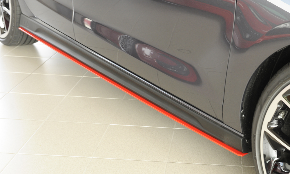 Der hochwertige Rieger Seitenschweller links ist speziell passend für Hyundai i30 N (PDE) entwickelt und überzeugt mit präziser Passform, sportlicher Optik und robustem Material aus ABS. Der Ansatz ist für den originalen N-Schweller vorgesehen und wird inklusive Gutachten und Montagezubehör geliefert, wodurch Sie eine einfache und sichere Installation erwarten können. Das Material ABS zeichnet sich durch hohe Schlagfestigkeit und Witterungsbeständigkeit aus und ist perfekt für den Einsatz am Fahrzeug geeignet. Der Seitenschweller wird unlackiert geliefert, kann jedoch auf Wunsch gegen Aufpreis auch in den Farben Rot (Art.-Nr. 00510161, gültig für 2 Stück) oder Schwarz-glänzend (Art.-Nr. 00510169, gültig für 2 Stück) bestellt werden. Diese sportliche Erweiterung verleiht Ihrem i30 N eine noch dynamischere Seitenlinie und betont den Performance-Charakter des Fahrzeugs.