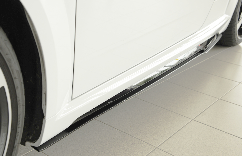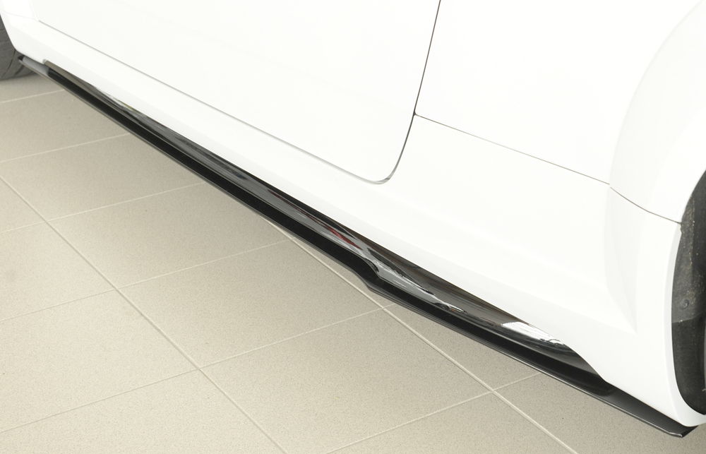 Der Rieger Seitenschwelleransatz für die linke Seite (ca. 7mm stark) sorgt für ein dynamisches Erscheinungsbild und verbessert die Aerodynamik Ihres Fahrzeugs. Gefertigt aus robustem ABS-Material ist dieser Ansatz ideal passend für die originalen S-Line-Seitenschweller. Er überzeugt durch präzise Passform, einfache Montage und eine langlebige, witterungsbeständige Konstruktion. Der Seitenschweller wird mit einem Gutachten geliefert, wodurch keine Eintragung erforderlich ist. Gegen Aufpreis ist dieser Seitenschwelleransatz auch in Schwarz-glänzend erhältlich (Art.-Nr. 00510179 für zwei Stück). Bitte beachten Sie, dass unlackierte Varianten vor der Montage lackiert werden müssen.