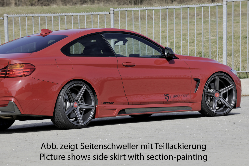Der hochwertige Rieger Seitenschweller links passend für BMW 4er F33 Cabrio ab Baujahr 07/2015 (Facelift LCI) überzeugt durch sportliches Design und präzise Passgenauigkeit. Gefertigt aus robustem ABS-Material bietet das Bauteil optimale Stabilität und eine lange Lebensdauer. Der Seitenschweller wird mit Schacht, Ausschnitt, Alugitter sowie passendem Montagezubehör geliefert und ist eintragungsfrei – das zugehörige Gutachten liegt der Lieferung bei. Durch die hochwertige Verarbeitung lässt sich der Schweller perfekt an den Fahrzeugflanken montieren und sorgt für eine markante, tiefergelegte Optik. Bitte beachten Sie, dass Artikel in PUR, GFK, ABS oder ABS/Carbon-Look unlackiert geliefert werden und vor der Endmontage lackiert werden müssen. Varianten in ABS/schwarz-glänzend oder ABS/schwarz-matt verfügen über eine fertige Finish-Oberfläche und erfordern keine Lackierung.