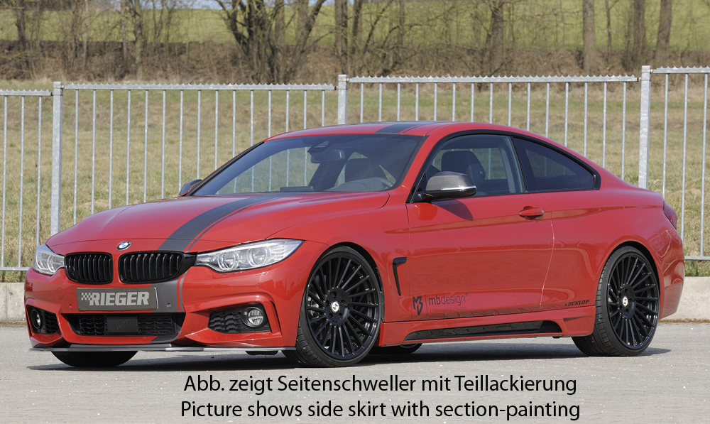 Der hochwertige Rieger Seitenschweller für die rechte Fahrzeugseite ist perfekt passend für BMW 4er F33 Cabrios ab Baujahr 07/2015 (Facelift/LCI). Gefertigt aus robustem ABS-Material, überzeugt dieser Schweller durch exakte Passform, hohe Stabilität und eine sportlich-dynamische Optik. Dank integriertem Schacht, präzisem Ausschnitt und beiliegendem Alugitter sorgt der Seitenschweller für eine deutlich verbesserte Aerodynamik und verleiht Ihrem Cabrio eine markante Linienführung. Das beiliegende Gutachten gewährleistet eine eintragungsfreie Montage. Bitte beachten Sie, dass ABS-, PUR- oder GFK-Bauteile unlackiert geliefert werden und vor der Endmontage lackiert werden müssen, während ABS/Schwarz-Glänzend oder -Matt (Finish) bereits montagefertig sind.