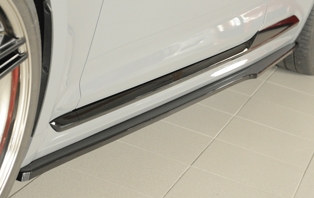 Der hochwertige Rieger Seitenschwelleransatz für die linke Fahrzeugseite ist speziell passend für Audi RS5 (B9/F5) Coupe von 03/2017 bis 02/2020 entwickelt. Er besteht aus robustem ABS-Kunststoff und überzeugt durch optimale Passgenauigkeit sowie sportliches Design. Durch die Wahl zwischen den Varianten Glanz Schwarz und Matt Schwarz können Sie das Erscheinungsbild Ihres Fahrzeugs individuell anpassen. Die Lieferung erfolgt unlackiert, sofern keine Finish-Oberfläche gewählt wird. Dank beiliegendem Gutachten ist keine zusätzliche Eintragung erforderlich, sodass Sie den Anbau unkompliziert und rechtssicher durchführen können. Der Seitenschwelleransatz sorgt für eine dynamische Linienführung und verleiht Ihrem RS5 einen markanten Auftritt.