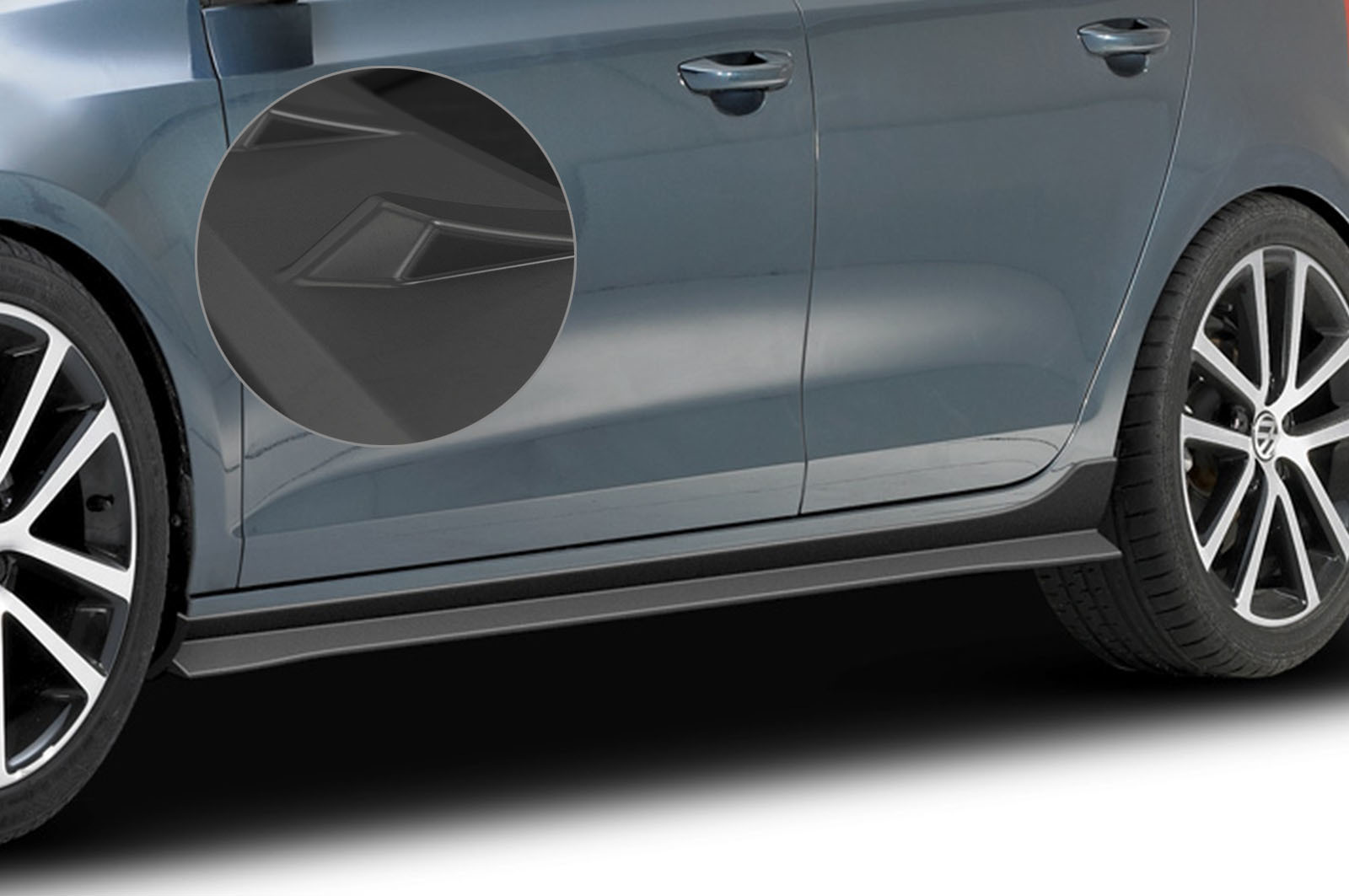 Die formschönen Seitenschweller im sportlichen TCR-Look verleihen Ihrem Fahrzeug eine dynamische Optik und betonen die Linienführung der Karosserie. Die Seitenschweller sind speziell passend für VW Golf 6 entwickelt und sorgen für eine exakte Passform ohne Nacharbeiten. Dank der hochwertigen Fertigung aus robustem ABS-Material sind sie langlebig, witterungsbeständig und flexibel zugleich.