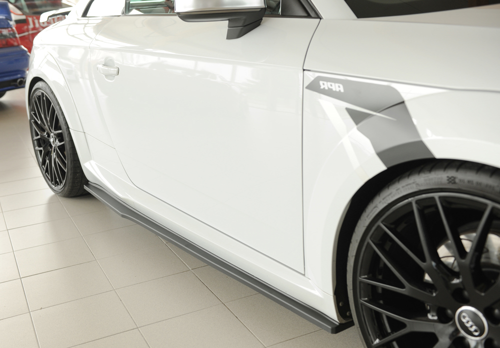 Der Rieger Seitenschwelleransatz in der Ausführung Glanz Schwarz oder Matt Schwarz ist die perfekte Ergänzung zur sportlichen Linie Ihres Audi TT. Der hochwertige Ansatz wird aus robustem ABS gefertigt und sorgt für eine markante Tieferlegung der Seitenlinie um etwa 19 mm. Das Teil ist speziell für die rechte Fahrzeugseite konzipiert und eignet sich ausschließlich für Fahrzeuge mit S-Line Exterieur, inklusive TT-S und TT-RS Modellen. Durch das präzise Design fügt sich der Schweller harmonisch in das Gesamtbild des Fahrzeugs ein und unterstreicht das sportlich-dynamische Erscheinungsbild. Das im Lieferumfang enthaltene Gutachten ermöglicht eine unkomplizierte Montage ohne Eintragung. Artikel in der Ausführung ABS/schwarz-glänzend oder ABS/schwarz-matt sind mit einer Finish-Oberfläche versehen und müssen nicht lackiert werden. Varianten aus ABS (unlackiert) können individuell lackiert werden. Auf Wunsch lässt sich der Seitenschweller perfekt mit weiteren Aerodynamikteilen von Rieger kombinieren, um ein harmonisches Gesamt-Tuning zu erzielen.