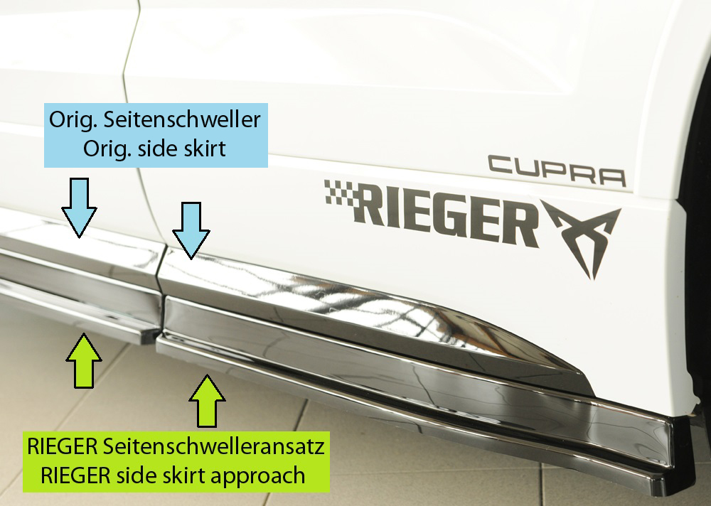 Der hochwertige Rieger Seitenschwelleransatz für die rechte Seite ist ein fahrzeugspezifisches Tuningelement passend für Seat Ateca FR (5FP) im Bauzeitraum 05.2017 bis 07.2020 und wurde speziell für die Ausstattungslinien FR und Cupra konzipiert. Das 3-teilige Set wird aus robustem ABS gefertigt und überzeugt durch präzise Passgenauigkeit sowie ein ansprechendes Design, das die sportliche Seitenlinie des Fahrzeugs betont.