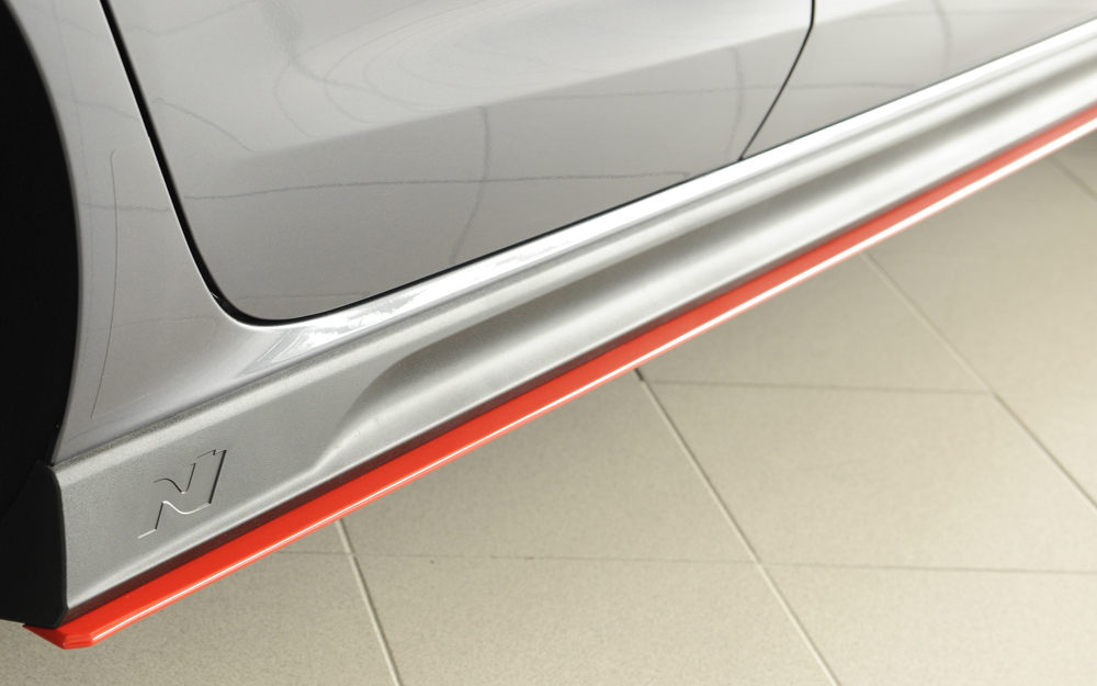Der hochwertige Rieger Seitenschweller links verleiht Ihrem Fahrzeug eine sportlich-dynamische Optik und verbessert zugleich die Aerodynamik. Der Ansatz wird speziell passend für Hyundai i30 N-Performance (PDE) entwickelt und überzeugt durch eine exakte Passform für die linke Fahrzeugseite. Gefertigt aus robustem ABS-Material ist er besonders widerstandsfähig, langlebig und für den täglichen Einsatz bestens geeignet. Dank des mitgelieferten Gutachtens ist der Seitenschweller eintragungsfrei und kann ohne zusätzliche TÜV-Abnahme montiert werden. Der Artikel wird unlackiert geliefert, kann aber gegen Aufpreis auch in ROT (Art.-Nr. 00510161, gültig für 2 Stück) oder Schwarz-glänzend (Art.-Nr. 00510169, gültig für 2 Stück) bestellt werden. Artikel aus ABS, PUR oder GFK sollten vor der Montage lackiert werden, es sei denn, sie besitzen eine schwarze Finish-Oberfläche.