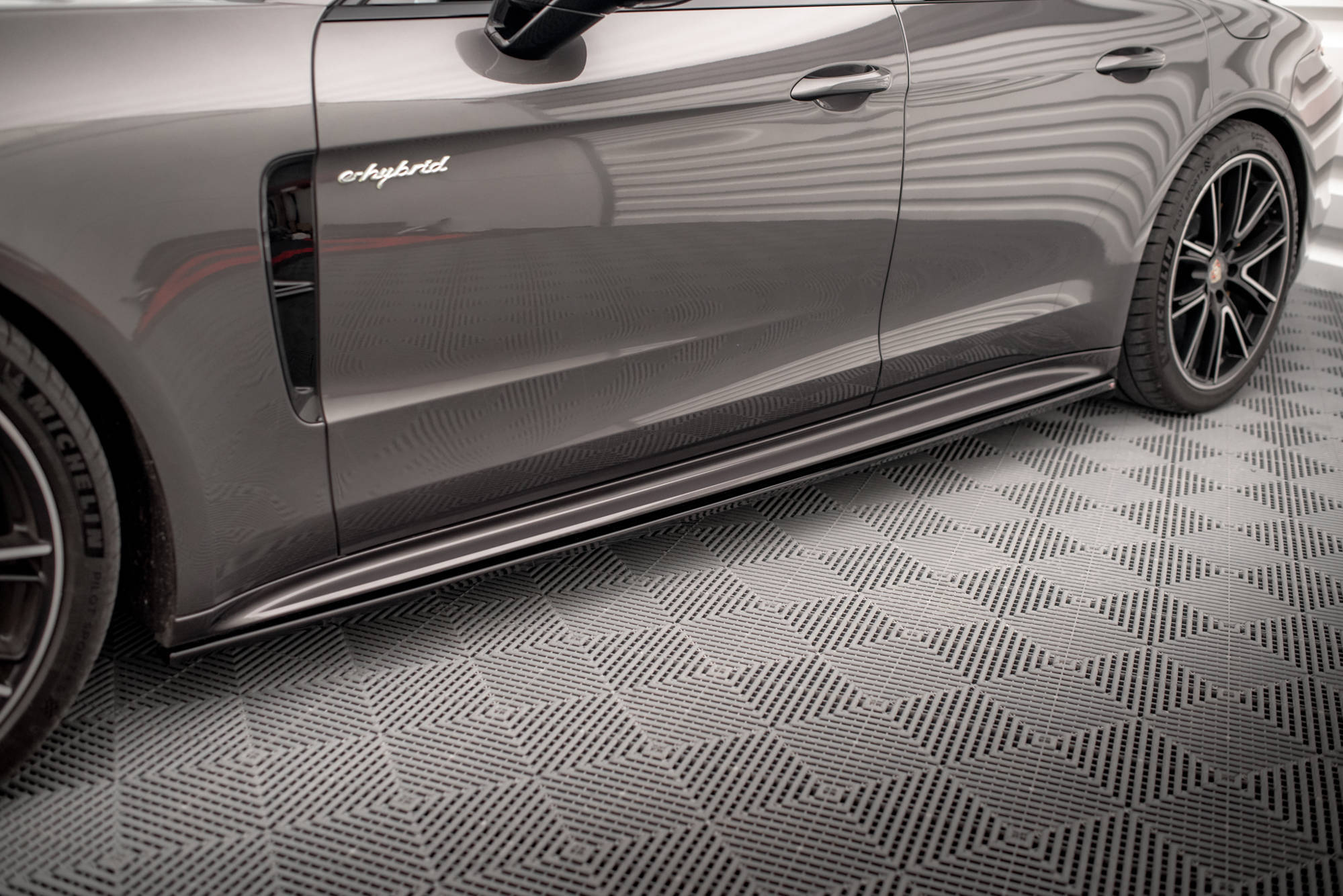 Der hochwertige Seitenschweller Ansatz für V.1 wurde präzise entwickelt und ist passend für Porsche Panamera Turbo S E-Hybrid, Panamera E-Hybrid und Panamera 4S 971 (Baujahre 2016–2020). Dieser Ansatz verleiht Ihrem Fahrzeug eine sportlichere Linienführung und verbessert die aerodynamischen Eigenschaften. Das Produkt wird aus robustem ABS-Kunststoff gefertigt, einem Material, das für seine hohe Schlagfestigkeit und Widerstandsfähigkeit bekannt ist. Dank der mitgelieferten ABE (eintragungsfrei) gestaltet sich der Einbau unkompliziert, ohne zusätzliche Eintragungen. Der Ansatz fügt sich harmonisch in das Fahrzeugdesign ein und betont die exklusive Optik des Panamera 971. Perfekt für alle, die Wert auf Qualität, Design und präzise Passform legen.