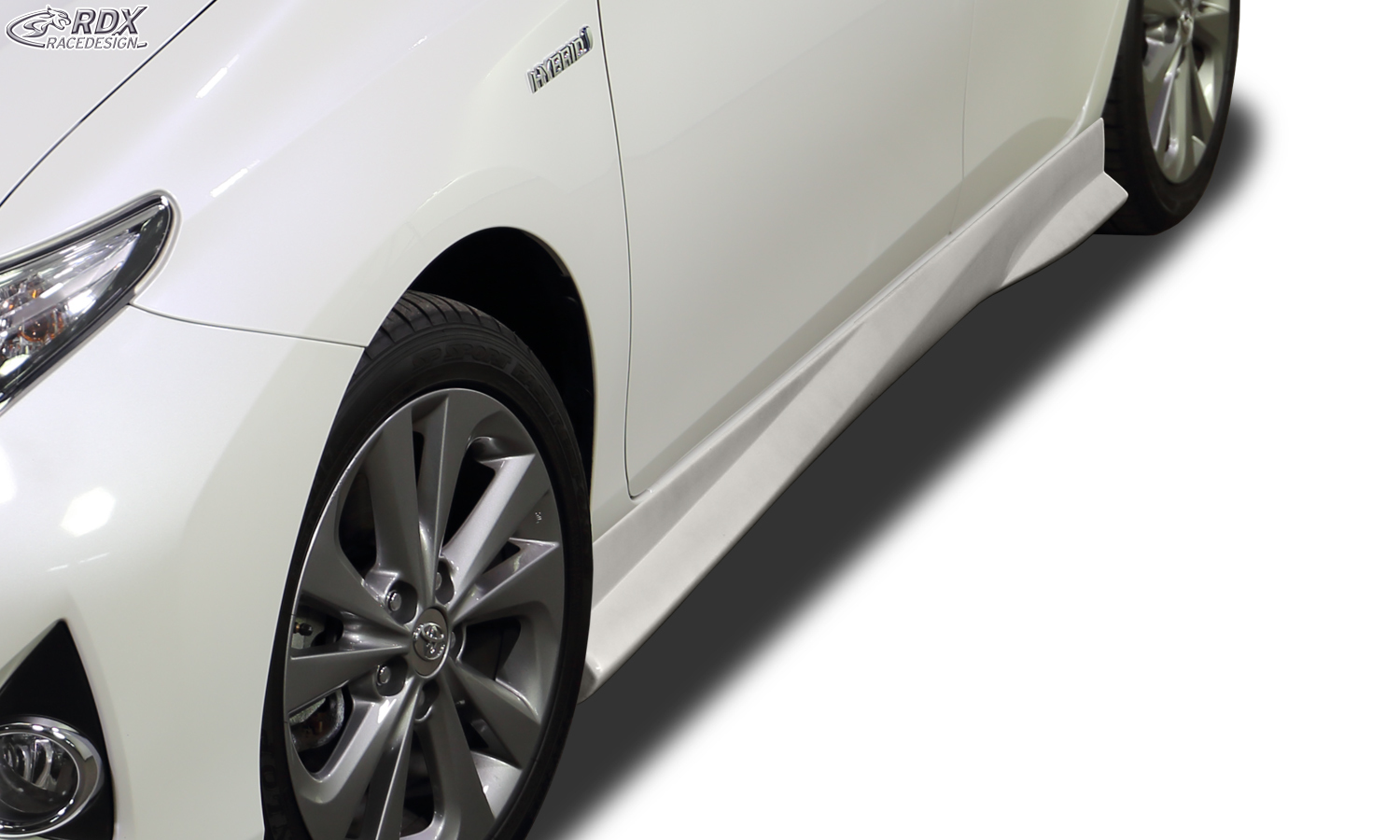 Die RDX Seitenschweller passend für Toyota Auris E180 bis 2015 verleihen Ihrem Fahrzeug eine sportlichere und dynamischere Linienführung. Dank präziser Fertigung passen die Schweller perfekt an die Karosserie und überzeugen durch eine stabile, bruchfeste Struktur aus hochwertigem ABS-Kunststoff. Die unlackierte Oberfläche ist optimal für die Lackierung vorbereitet und bietet eine glatte, saubere Basis für individuelle Farbgestaltungen. Das aerodynamische Design sorgt zudem für ein verbessertes optisches Erscheinungsbild und betont die sportliche Silhouette Ihres Fahrzeugs. Durch die einfache Montage mit Schrauben, Nieten und beiliegendem Karosseriekleber lässt sich das Set auch ohne Spezialwerkzeug installieren. TÜV-Freigabe inklusive – somit 100 % eintragungsfrei.