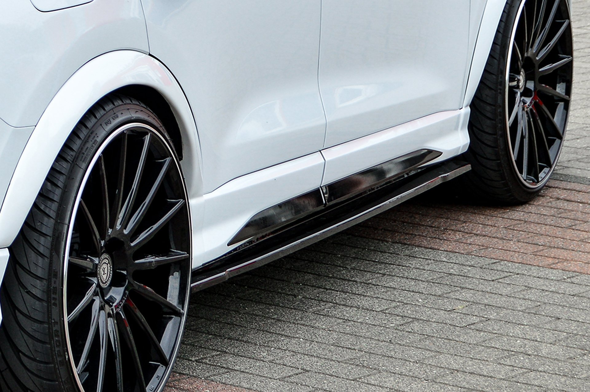 Der Cup Seitenschweller Satz aus robustem ABS-Kunststoff sorgt für eine sportliche Optik und verbesserte Aerodynamik Ihres Fahrzeugs. Die Schweller werden unter den Originalschwellern montiert und verleihen dem Fahrzeug eine dynamische Linienführung, die ideal zu den S-Line und RS Modellen passt. Dank der gleichmäßigen Oberflächenstruktur eignet sich der Seitenschweller perfekt für eine individuelle Lackierung in Wunschfarbe. Das Material ist splittersicher, schlagfest und flexibel, was eine lange Lebensdauer garantiert. Eine einfache Montage ist durch die mitgelieferte Anleitung und das Befestigungsmaterial gewährleistet. Geliefert wird der Artikel unlackiert und mit ABE – Sie müssen lediglich die mitgelieferten Unterlagen mitführen.