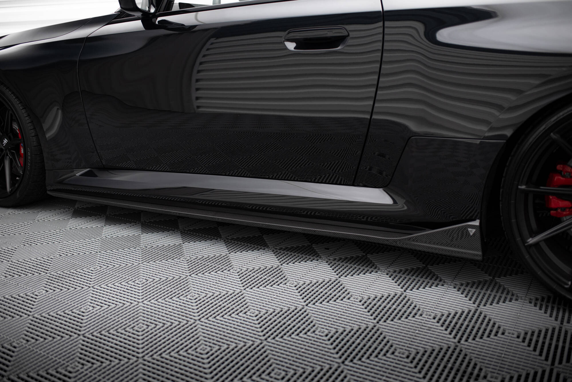 Die hochwertigen Prepreg Carbon Seitenschweller passend für BMW M2 G87 überzeugen durch ihr exzellentes Verhältnis von Gewicht zu Festigkeit und präziser Fertigungstechnologie. Hergestellt in einer spezialisierten Carbon-Manufaktur, sorgen sie für eine deutlich verbesserte Aerodynamik und ein sportlicheres Erscheinungsbild Ihres Fahrzeugs. Die Seitenschweller senken die Fahrzeugflanke sowohl optisch als auch physisch um ca. 2 cm ab, wodurch der Luftstrom unter dem Fahrzeug reduziert wird.