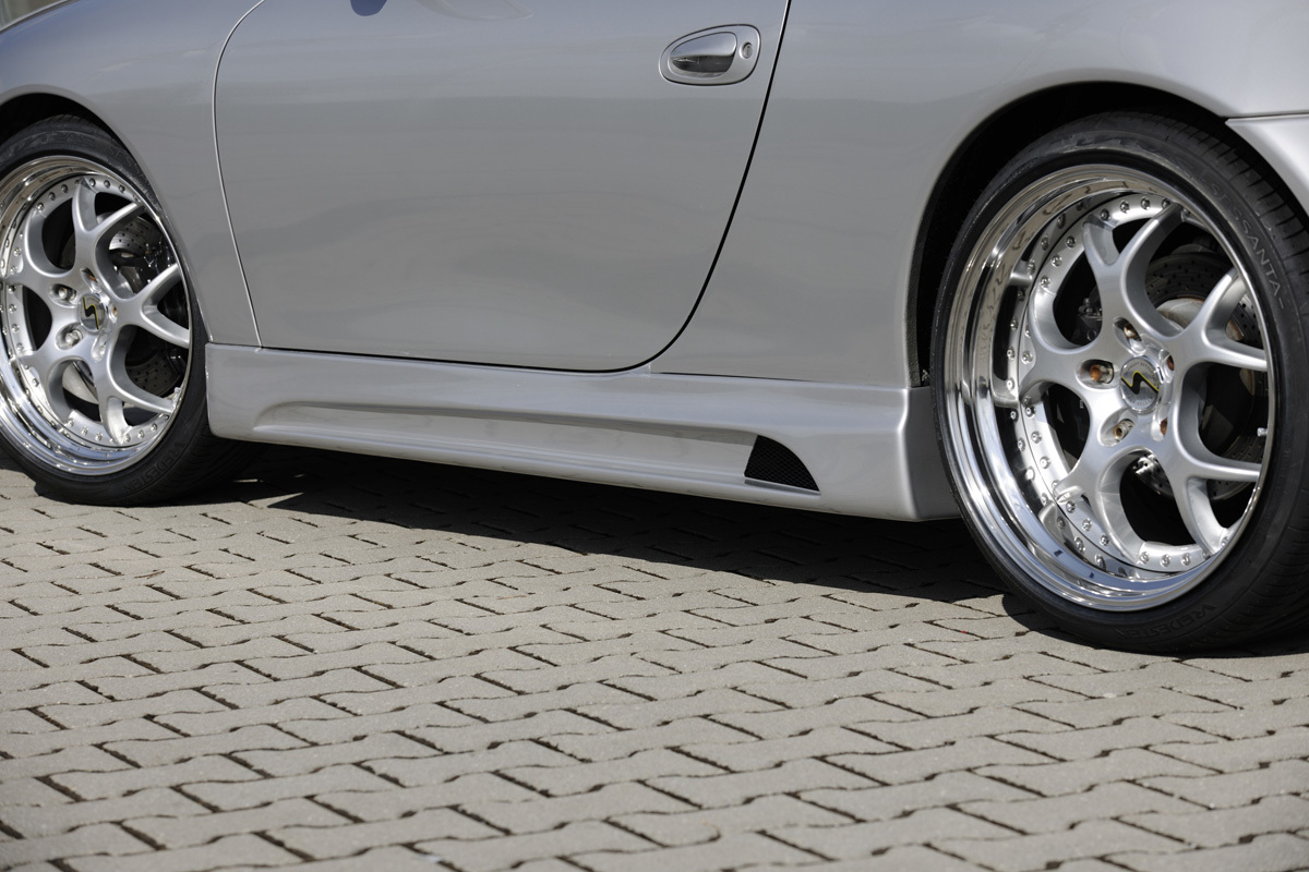 Der hochwertige Rieger Seitenschweller rechts ist exakt passend für Porsche 911 (Typ 996) Coupe (Baujahr 09/1997–08/2005) gefertigt. Gefertigt aus langlebigem ABS-Material, überzeugt dieser Seitenschweller durch seine präzise Passform und die sportliche Optik. Er wird mit integriertem Schacht und Ausschnitt geliefert – das Design sorgt für eine verbesserte Linienführung und ein dynamisches Erscheinungsbild Ihres Fahrzeugs. Das mitgelieferte Alugitter ergänzt den hochwertigen Look und gewährleistet gleichzeitig eine effektive Luftführung. Durch die im Lieferumfang enthaltenen Montagezubehörteile ist die Montage einfach und sicher umzusetzen. Dank des beiliegenden Gutachtens ist keine Eintragung erforderlich, was Ihnen Zeit und Aufwand spart.