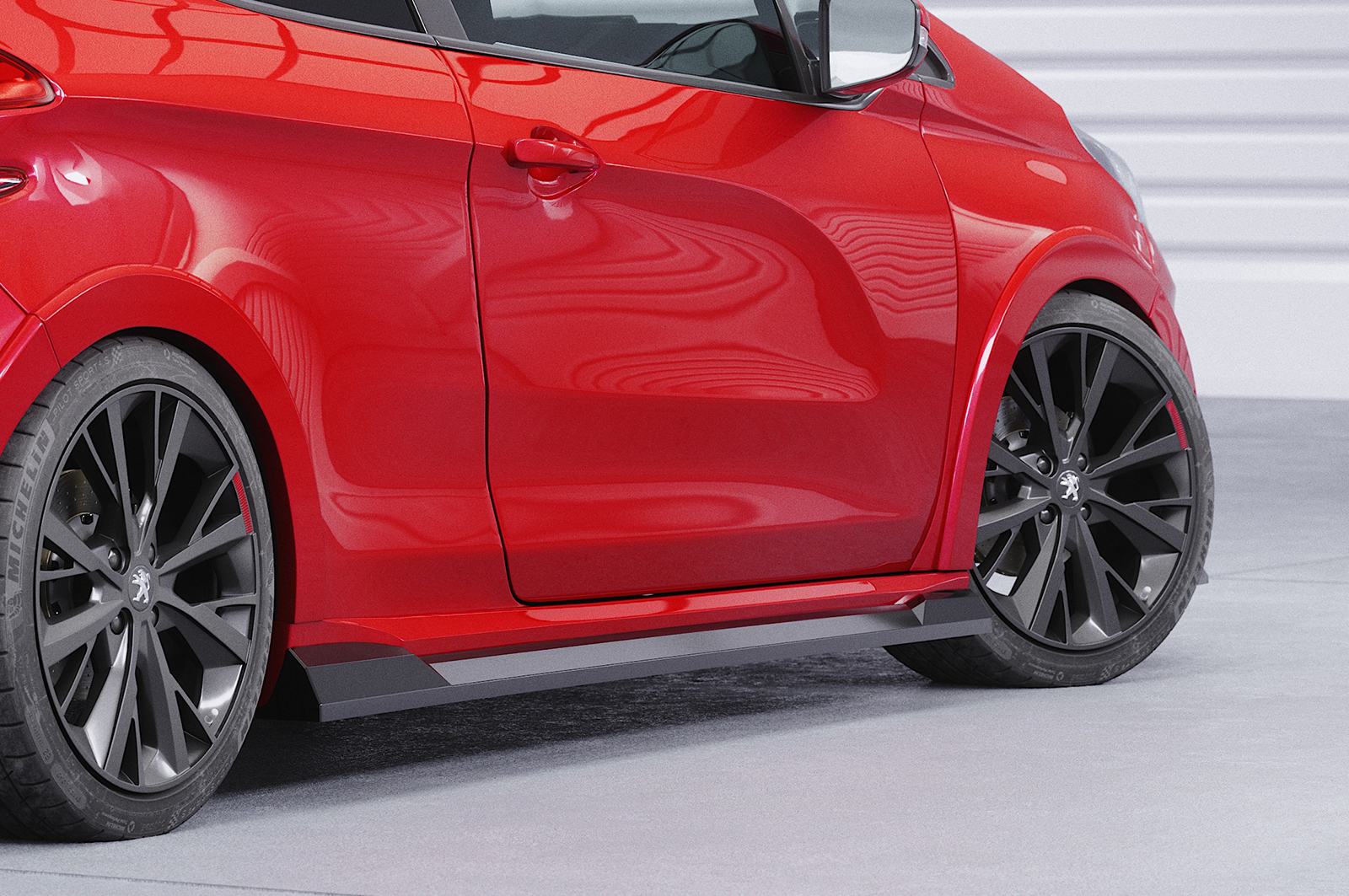 Die Seitenschweller sind flexibel, was das Anbringen besonders angenehm macht, und widerstehen selbst starken Belastungen wie hohen Geschwindigkeiten, Feuchtigkeit oder Waschstraßen. Durch ihre fahrzeugspezifische Passform passen sie präzise an die Karosserie des 208 GTi und verleihen dem Fahrzeug ein harmonisch-sportives Erscheinungsbild.