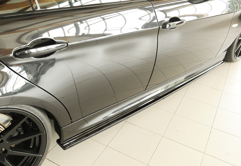 Der exklusive Rieger Seitenschweller rechts passend für BMW 3er E90 (03.05–08.08) verleiht Ihrem Fahrzeug eine sportlich-markante Optik und verbessert die Aerodynamik nachhaltig. Gefertigt aus robustem ABS-Kunststoff zeichnet sich dieser Seitenschweller durch hohe Passgenauigkeit, Stabilität und Langlebigkeit aus. Die Montage erfolgt unkompliziert mit dem beiliegenden Zubehör und ist dank des mitgelieferten Gutachtens eintragungsfrei. Sie haben die Wahl zwischen der Oberfläche Matt Schwarz oder Glanz Schwarz. Beide Varianten bieten eine hochwertige Finish-Oberfläche – eine Lackierung ist daher nicht erforderlich. Dieser Ansatz ist speziell für die rechte Seite konzipiert; der linke Seitenschweller ist separat erhältlich. Artikel in PUR, GFK, ABS oder ABS/Carbon-Look werden unlackiert geliefert und müssen vor der Endmontage lackiert werden. Das Gutachten ist bis 255 km/h V-max gültig.