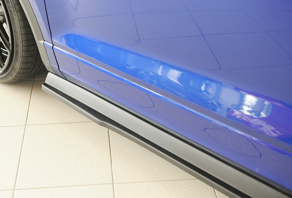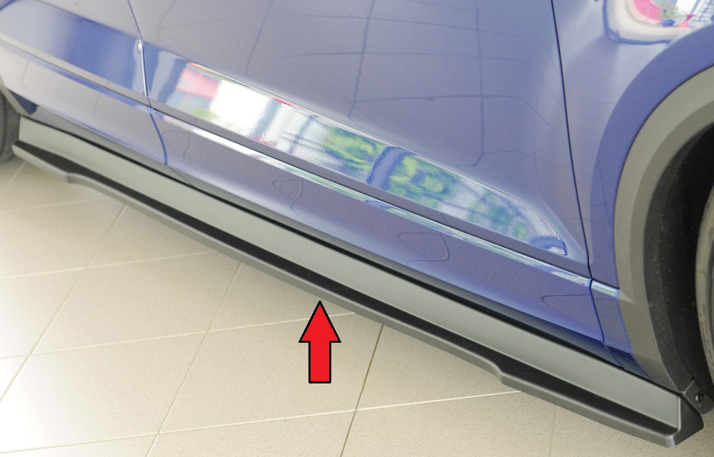 Der Rieger Seitenschweller rechts ist ein hochwertiger Ansatz aus robustem ABS-Material, passend für den originalen Seitenschweller des VW T-Roc (A1) ab Baujahr 01/2022 (Facelift). Dieses aerodynamische Karosserieteil verbessert nicht nur das sportliche Erscheinungsbild Ihres Fahrzeugs, sondern sorgt auch für eine präzise Passgenauigkeit und eine einfache Montage.
