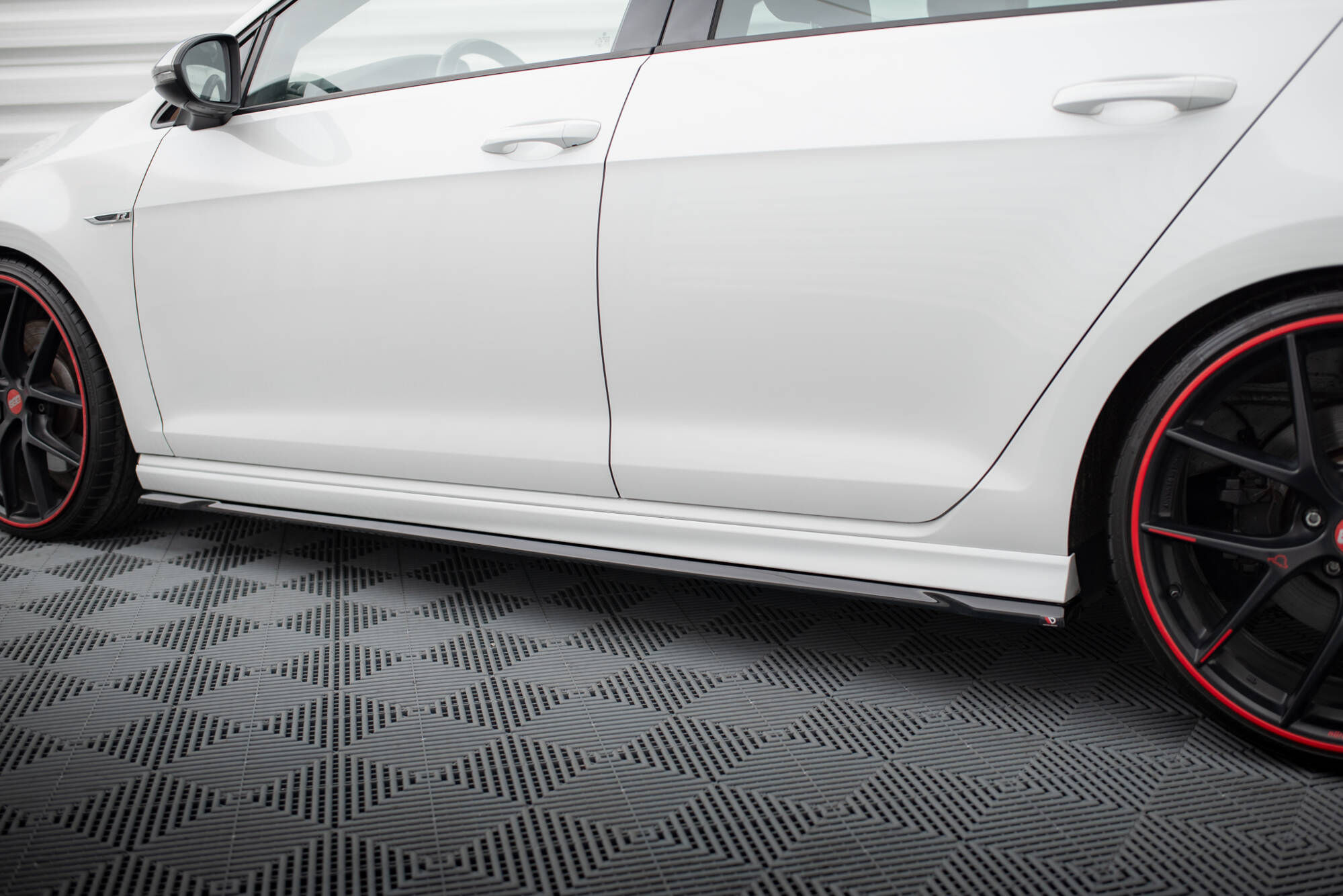 Der Seitenschweller Ansatz V.4 bietet eine sportliche Ergänzung für das Fahrzeugdesign und sorgt für eine dynamische Linienführung entlang der Fahrzeugflanken. Das Produkt ist passend für VW Golf R und VW Golf R-Line Mk7 (Baujahr 2013–2016) und trägt wesentlich zu einem individuelleren Erscheinungsbild bei. Durch die präzise Passform und den Einsatz von robustem ABS-Kunststoff ist eine hohe Langlebigkeit sowie einfache Montage gewährleistet. Der verwendete ABS-Kunststoff entspricht höchsten Qualitätsstandards und ist witterungsbeständig sowie formstabil. Ein im Lieferumfang enthaltenes Gutachten (ABE) ermöglicht eine unkomplizierte Verwendung ohne zusätzliche Eintragung. Dieses aerodynamische Tuningelement betont die Seitenlinie des Fahrzeugs und verleiht ihm einen markanten, sportlichen Charakter.