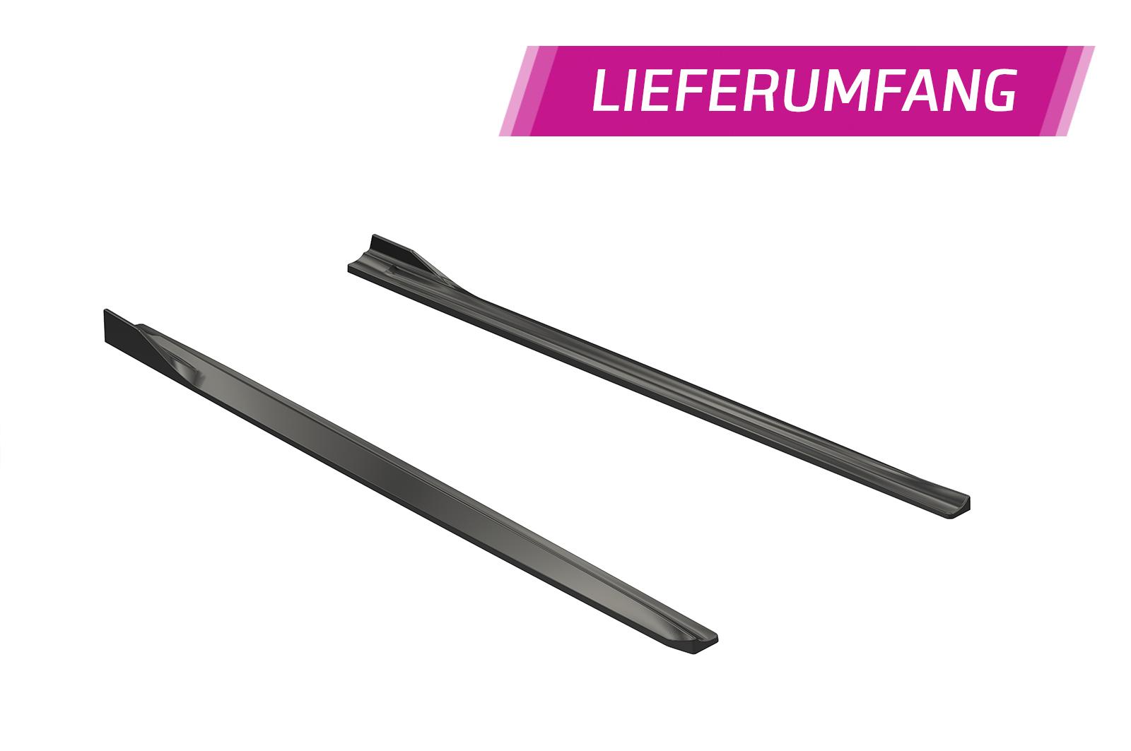 Die Seitenschweller sind schwarz strukturiert und müssen nicht lackiert werden. Optional kann eine Lackierung nach Wunsch erfolgen, ist jedoch optisch nicht erforderlich. Sie sind widerstandsfähig gegen Temperaturschwankungen, Feuchtigkeit und Waschstraßenbeanspruchung und somit ideal für den täglichen Einsatz sowie sportliche Tuning-Fahrzeuge.