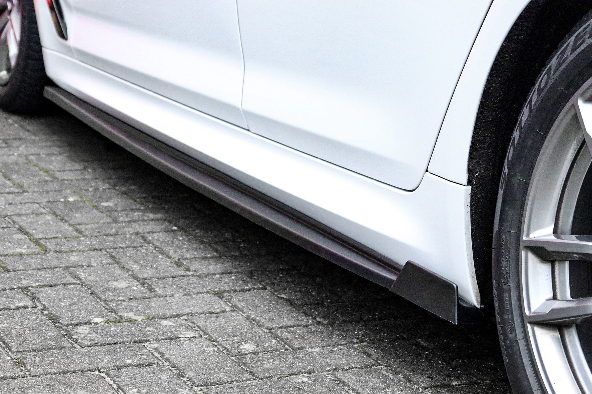 Die hochwertigen Seitenschweller mit integrierten Wings hinten verleihen Ihrem Fahrzeug einen dynamischen Look und verbessern gleichzeitig die aerodynamischen Eigenschaften. Diese Schweller werden als einfacher Unterbau unter dem originalen Schweller montiert und überzeugen durch ihre präzise Passform. Gefertigt aus robustem, unlackiertem ABS-Material sind sie schlagfest, flexibel und splitterfrei. Dank ihrer gleichmäßigen Oberflächenstruktur können Sie die Schweller problemlos lackieren – wahlweise in Schwarz Glanz, Schwarz Matt oder Carbon Optik.