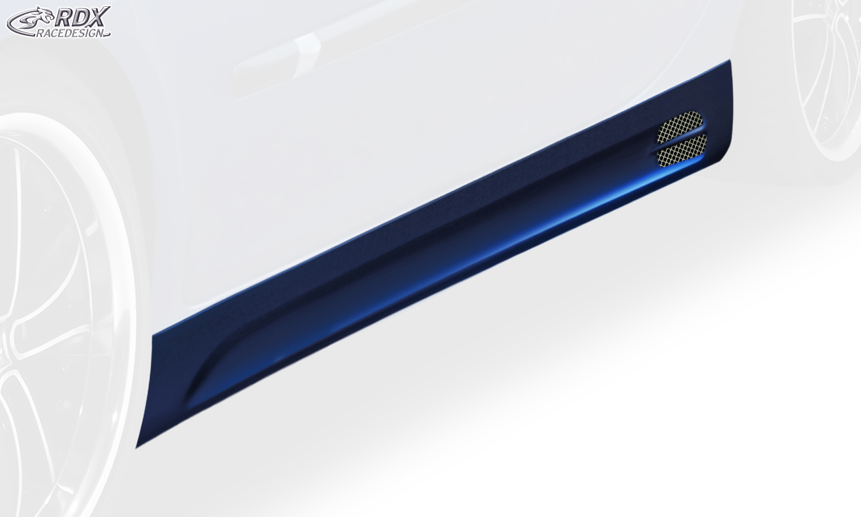The RDX GT4 sideskirts give your vehicle a dynamic and sporty look while improving the aerodynamic profile. Designed with precision for an excellent fit, these side skirts stand out thanks to their high-quality construction and TÜV approval, ensuring both visual appeal and legal road conformity. Manufactured from durable ABS plastic, the skirts come unpainted in black with a paint-friendly surface that allows easy color customization. Silver aluminium mesh inserts are included for the air inlets, creating an even more aggressive performance appearance. The set is easy to install thanks to the provided mounting accessories and precise fitment for the Renault Clio 3 Phase 1 / 2.