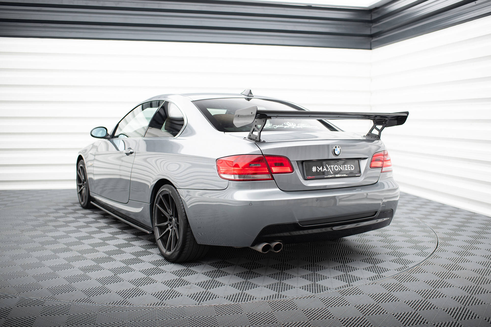 Der Heckspoiler beeinflusst die Luftströmung im hinteren Bereich des Fahrzeugs und optimiert den Anpressdruck, wodurch das Fahrverhalten deutlich dynamischer wird. Gleichzeitig unterstreicht der Carbon-Look die sportliche Linienführung des BMW 3er / M3 Coupe E92 und verleiht dem Fahrzeug einen markanten Racing-Charakter.
