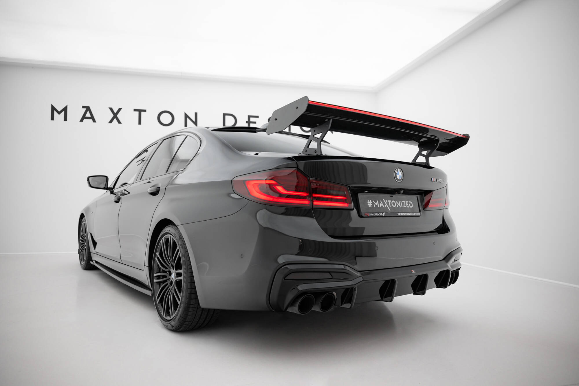 Der hochwertige Carbon Spoiler mit internen Halterungen, seitlichen Endplatten und LED-Beleuchtung ist speziell passend für BMW 5er / M5 Limousine G30 / F90 entwickelt. Er verbindet aerodynamische Effizienz mit markantem Motorsport-Look. Der Spoiler optimiert die Luftführung im Heckbereich, verbessert die Fahrzeugstabilität bei höheren Geschwindigkeiten und betont das sportliche Design der Limousine.