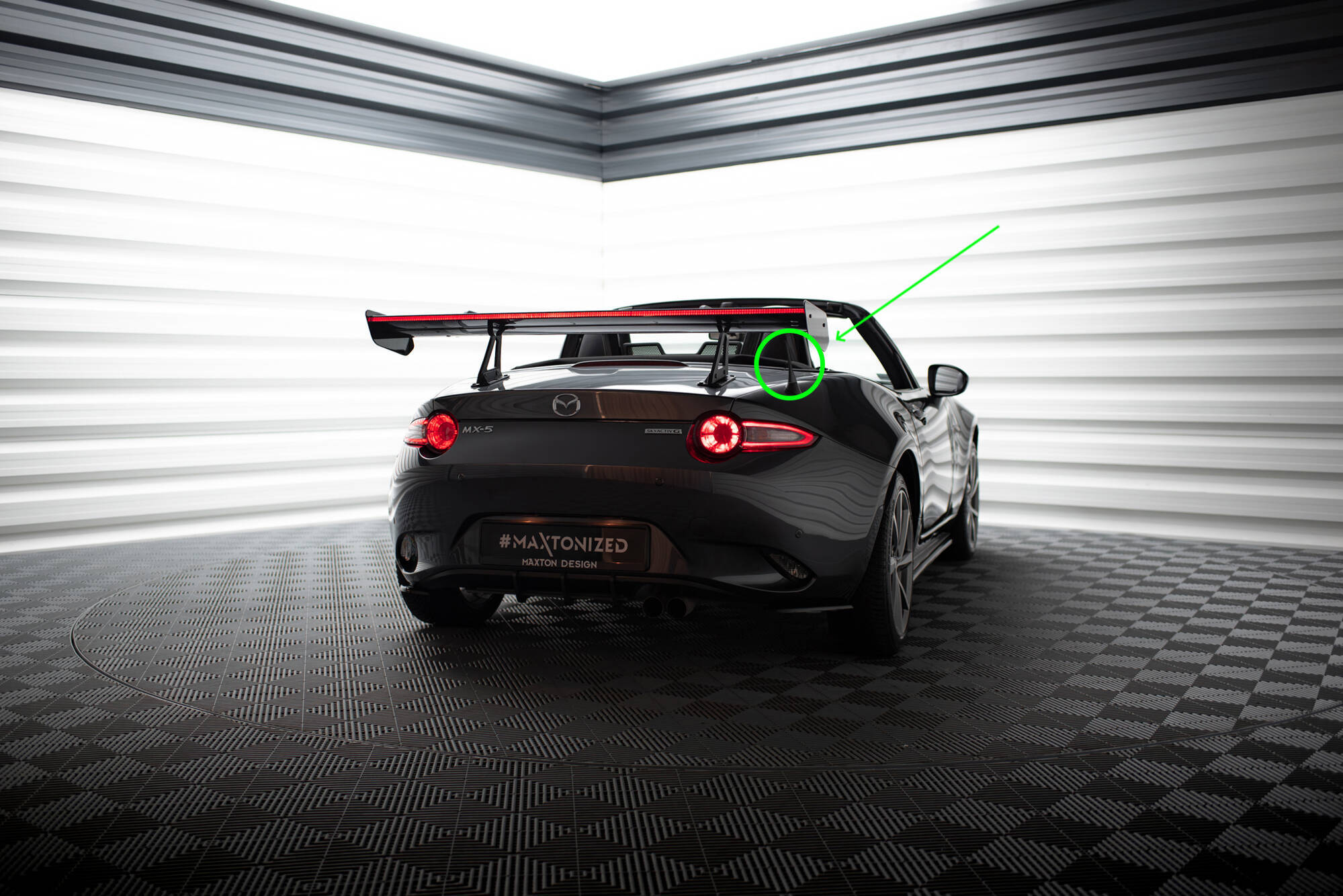 Der Carbon Spoiler mit Upper Swan Mounting trägt entscheidend zur Verbesserung des Luftstroms im hinteren Fahrzeugbereich bei. Er reduziert den Auftrieb, erhöht die Fahrstabilität und betont den sportlichen Charakter des Mazda MX-5 ND. Die markante Struktur des Carbons unterstreicht zusätzlich das exklusive Design und sorgt für ein motorsporttypisches Finish.