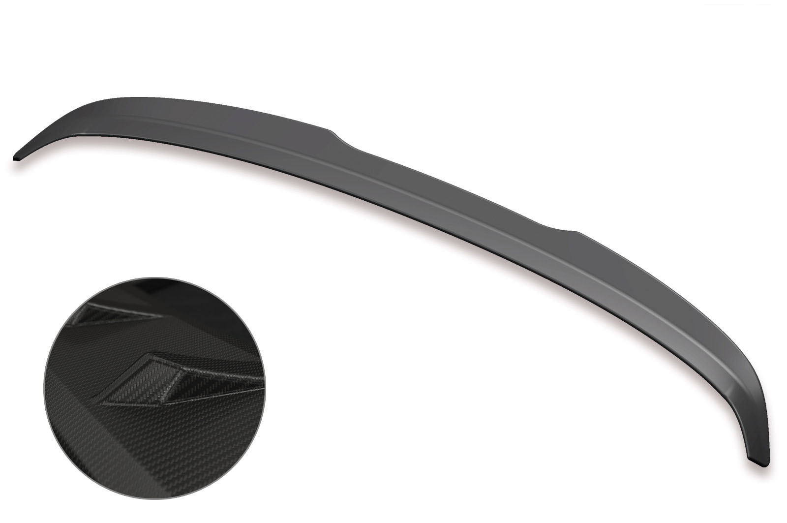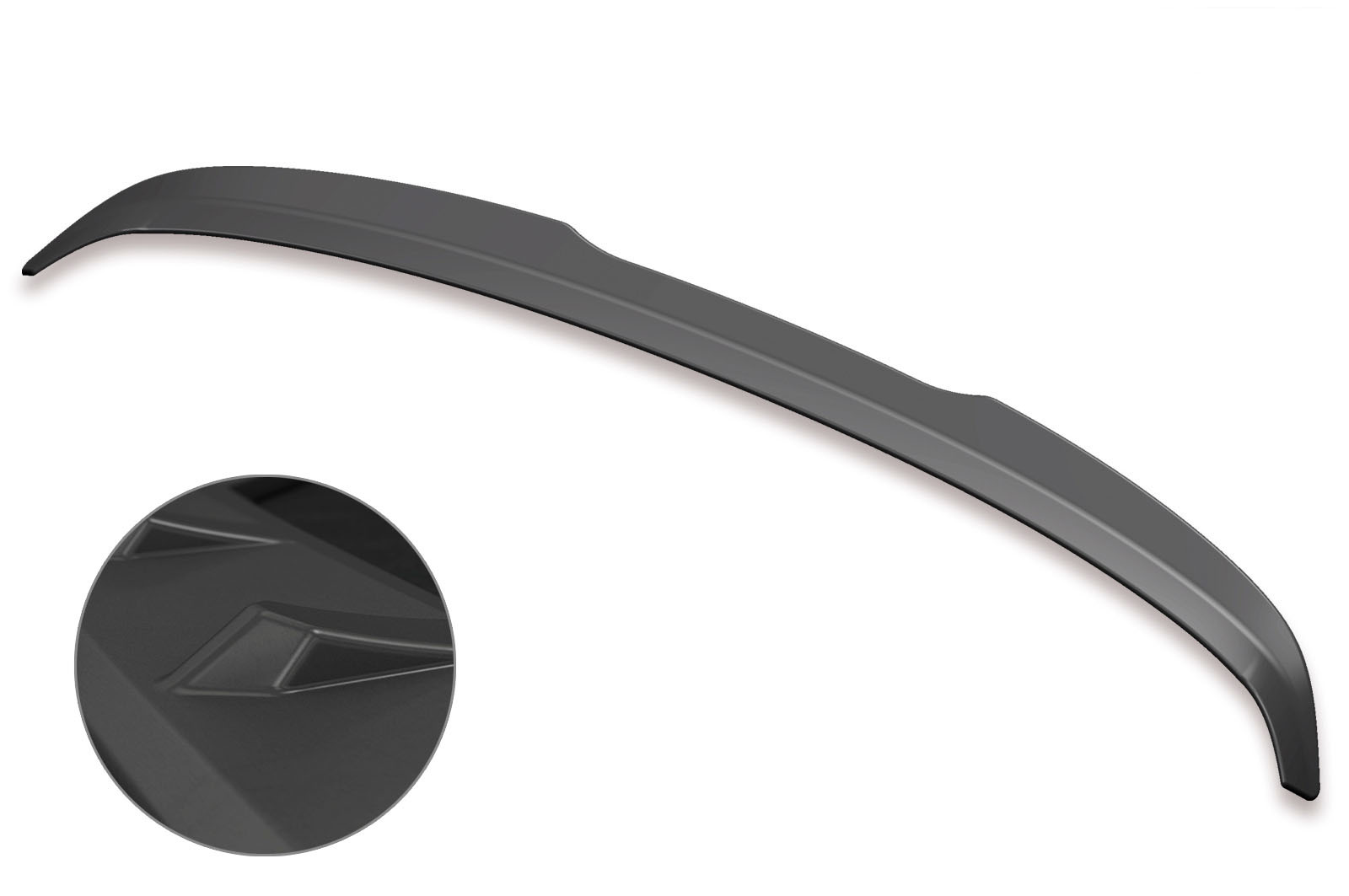 Erhältlich ist der Heckflügel in verschiedenen Oberflächenvarianten: Schwarz Strukturiert, Schwarz Hochglanz, Lackierfreundlich, Carbon Look Hochglanz und Carbon Look Matt. Somit können Sie Ihren individuellen Stil frei wählen.