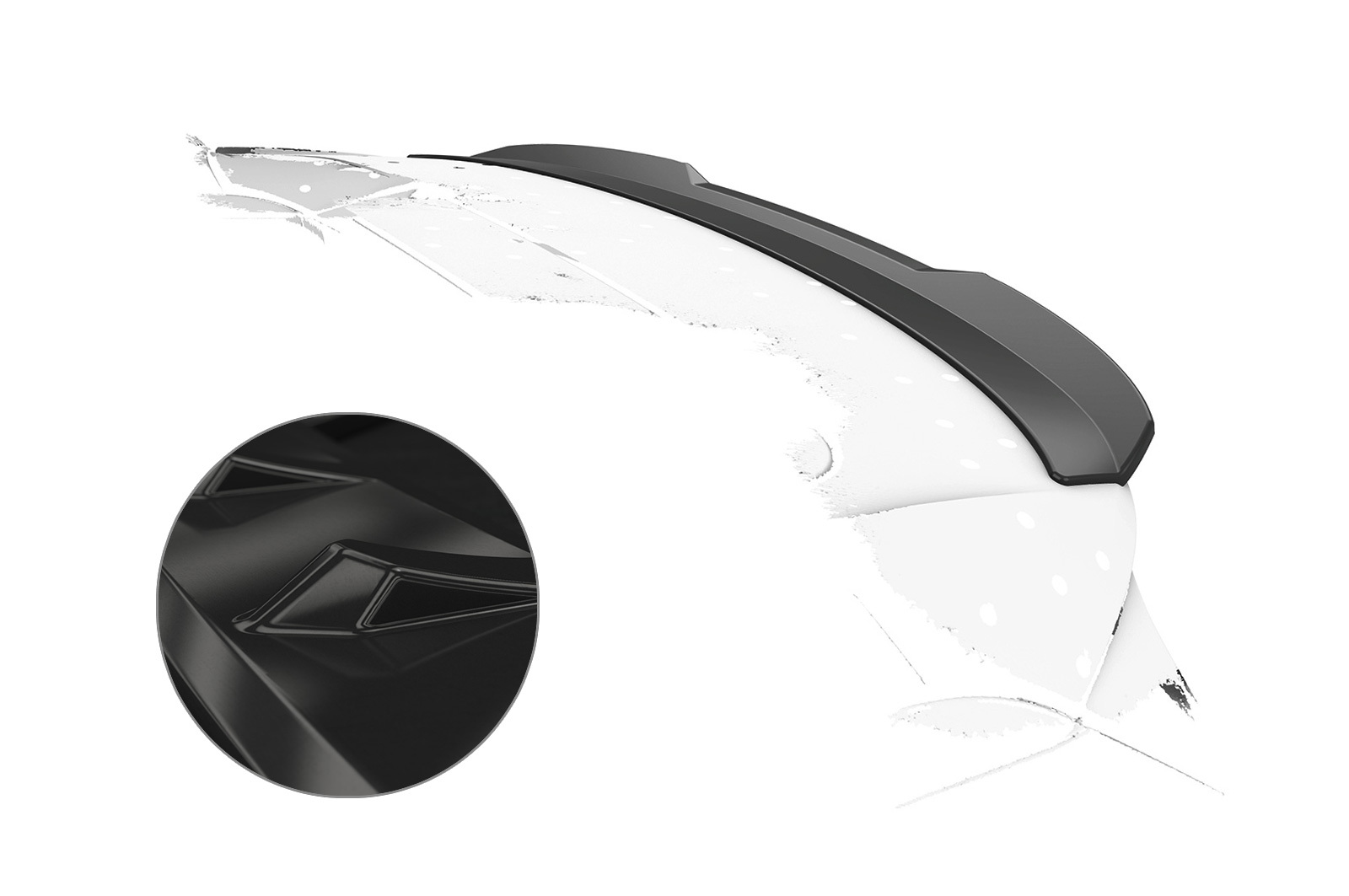 Der Heckspoiler ist in verschiedenen Oberflächenvarianten erhältlich: Schwarz Strukturiert, Carbon Look Hochglanz, Schwarz Hochglanz, Lackierfreundlich und Carbon Look Matt. Diese Auswahl ermöglicht Ihnen eine optimale Anpassung an das Design Ihres Fahrzeugs. Das flexible Material erlaubt zudem einen einfachen Rückbau ohne Schäden am Lack.
