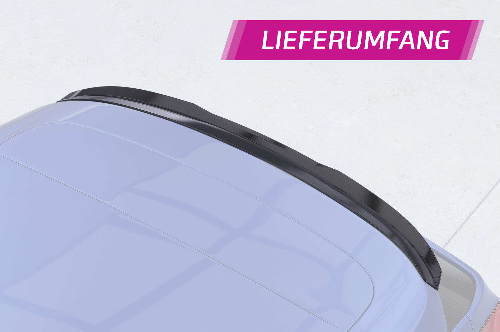 Der Heckflügel ist in verschiedenen Oberflächenversionen erhältlich: Schwarz Strukturiert, Carbon Look Hochglanz, Schwarz Hochglanz, Lackierfreundlich und Carbon Look Matt. Jede Variante bietet eine individuelle Optik und harmoniert perfekt mit unterschiedlichen Fahrzeugfarben.