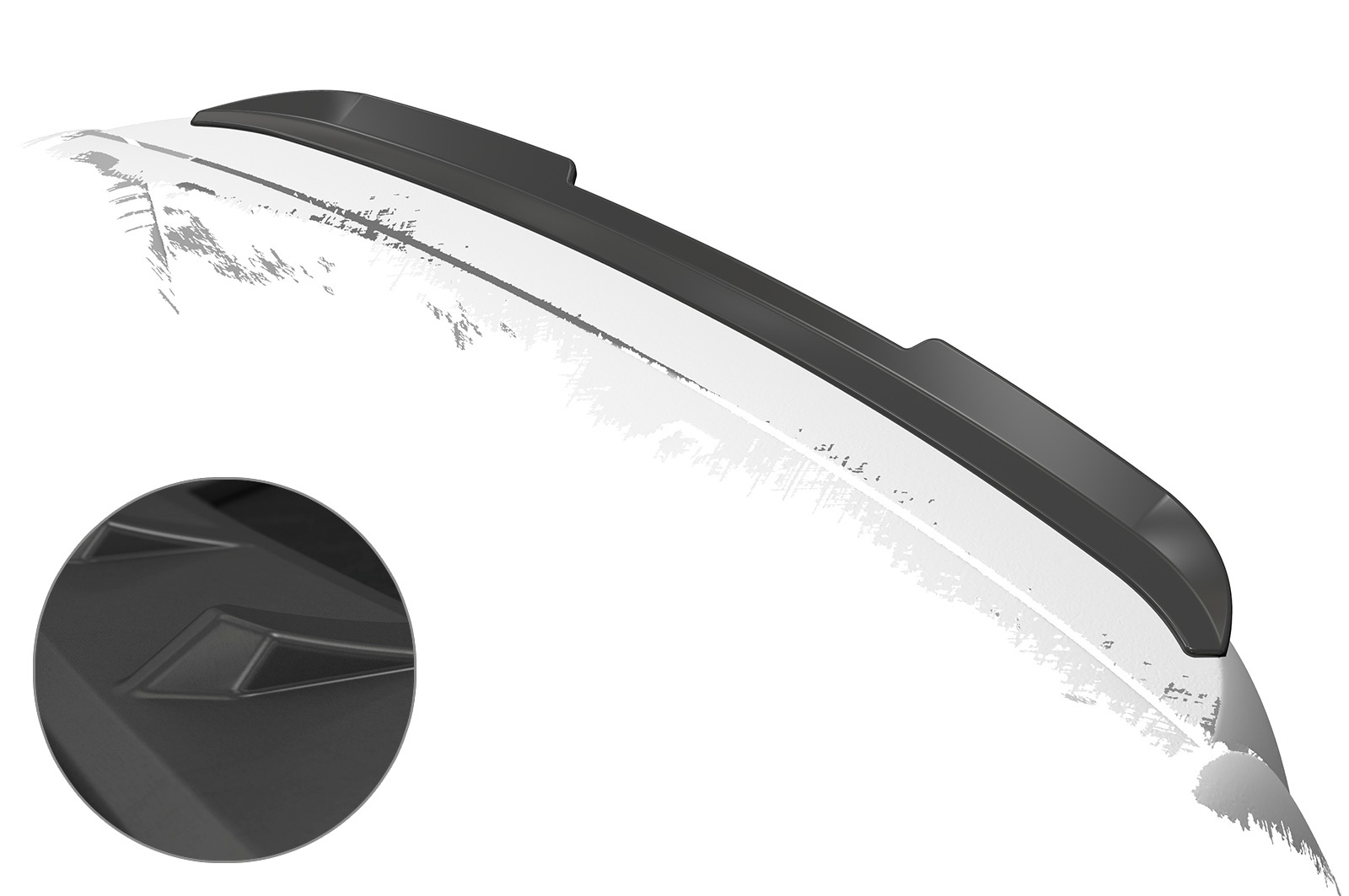 Der Spoiler ist aus robustem ABS-Kunststoff gefertigt und wahlweise mit unterschiedlichen Oberflächen wie Carbon Look Hochglanz, Schwarz Hochglanz, Lackierfreundlich, Carbon Look Matt oder Schwarz Strukturiert erhältlich. Die Oberfläche in Carbon-Optik sorgt für ein sportliches, hochwertiges Erscheinungsbild, während die glatte Oberfläche alternativ optimal zur Lackierung vorbereitet ist.