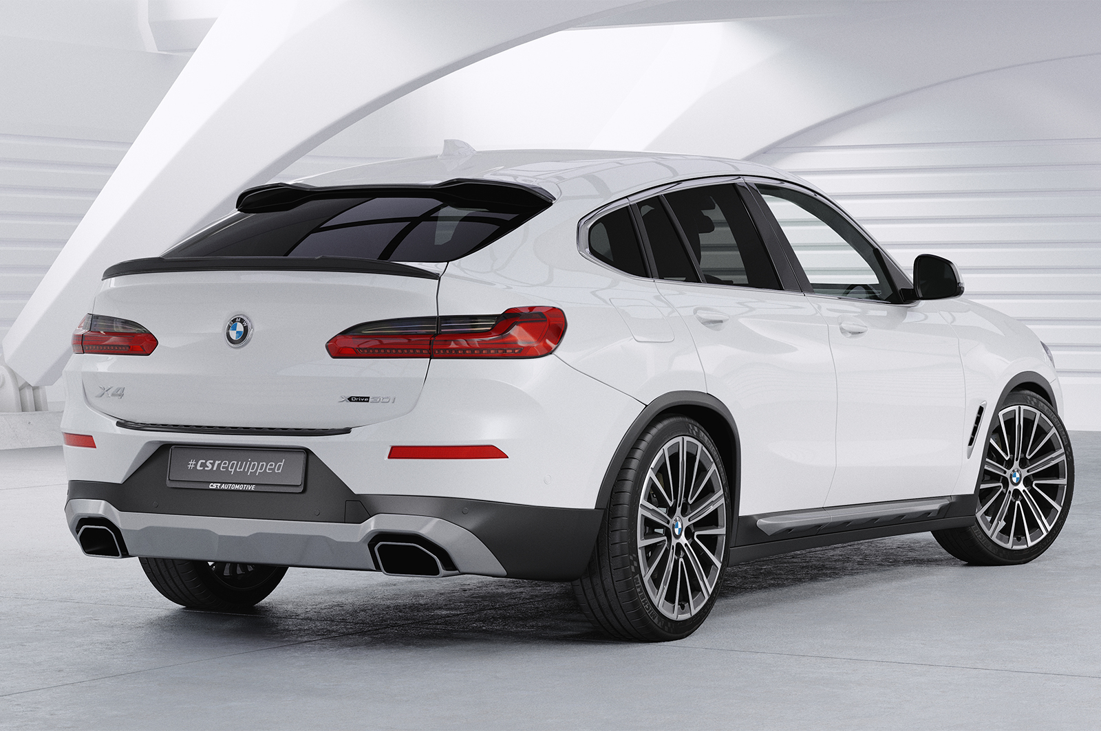 Der Heckflügel ist unlackiert in strukturierter schwarzer Oberfläche ausgeführt, wodurch kein zusätzlicher Lackieraufwand erforderlich ist. Durch das dezente und dynamische Design wird die sportliche Linienführung des X4 G02 wirkungsvoll betont, ohne übertrieben zu wirken.