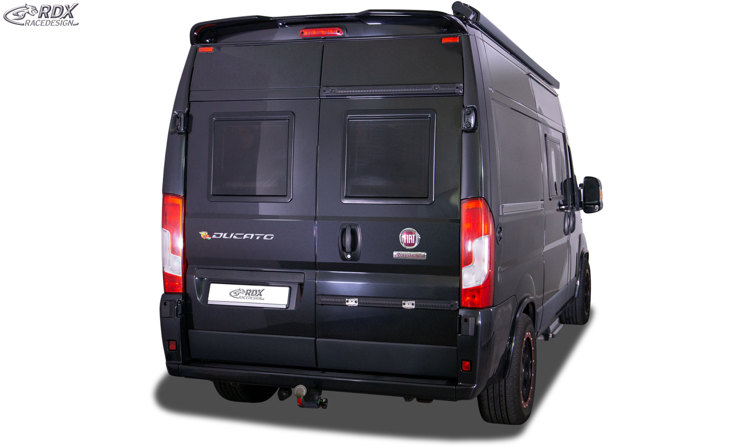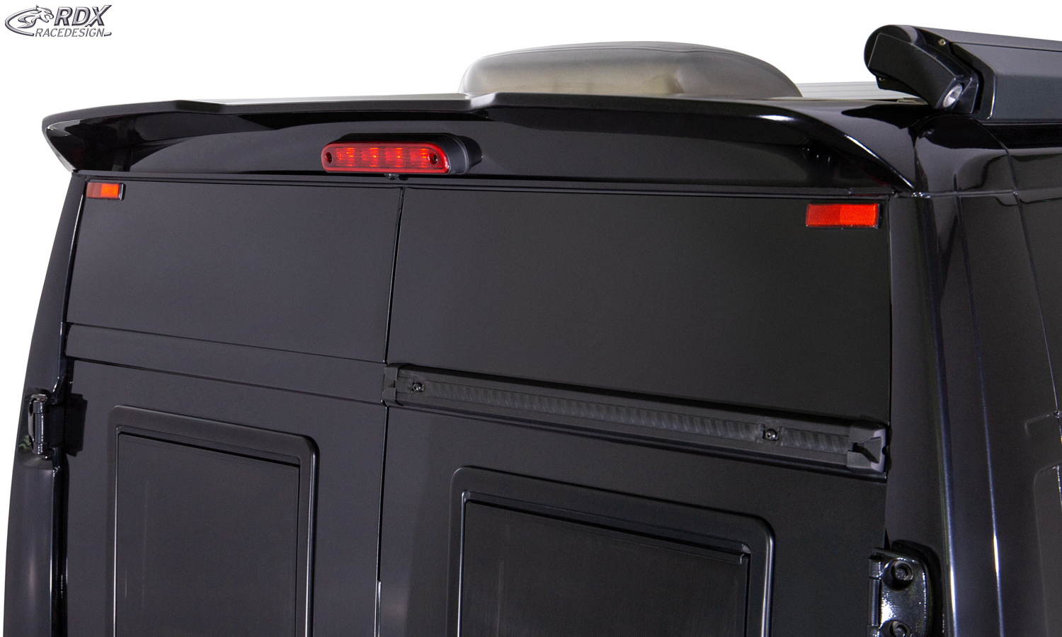 Der hochwertige RDX Heckspoiler verleiht Ihrem Transporter einen sportlich-dynamischen Look und verbessert gleichzeitig die Aerodynamik. Er ist präzise gefertigt und speziell passend für CITROEN Jumper H2, FIAT Ducato H2, OPEL Movano H2 und PEUGEOT Boxer H2 entwickelt. Gefertigt aus robustem PUR-IHS Kunststoff in Erstausrüsterqualität überzeugt der Dachspoiler durch hohe Stabilität, perfekte Passform und eine lackierfreundliche Oberfläche.