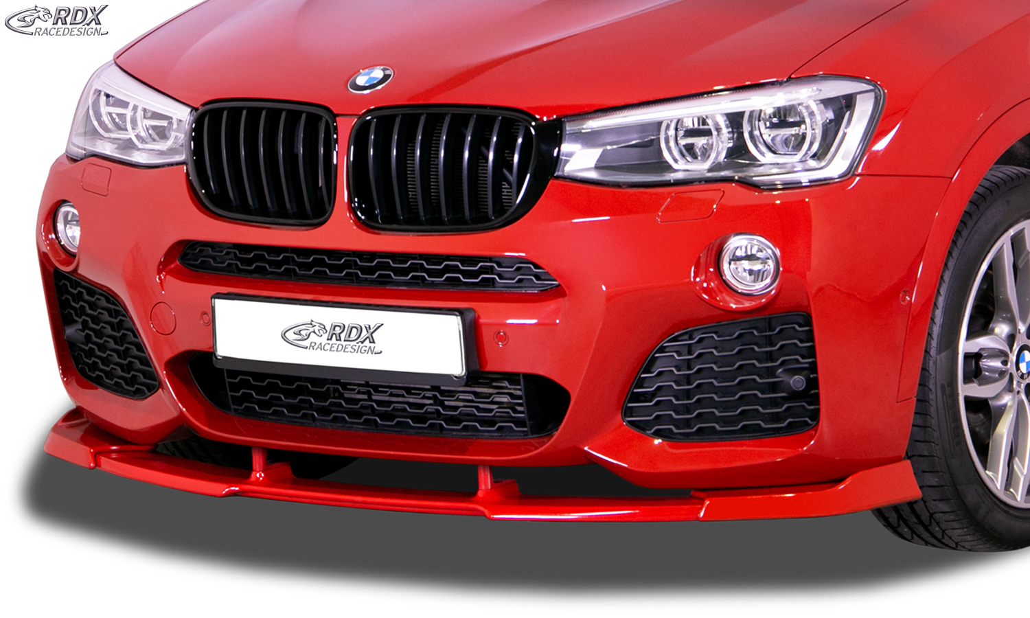 Der RDX VARIO-X Frontspoiler ist eine hochwertige Frontlippe in sportlich-dynamischem Design, passend für BMW X3 F25 M-Sport & M-Technik (Baujahr 2014–2017). Das innovative, dreiteilige System ermöglicht individuelle Lackierungen und eine exakte Anpassung an Ihr Fahrzeug. Durch das bruchsichere PUR-Kunststoffmaterial überzeugt der Frontspoiler mit hoher Stabilität und Langlebigkeit. Dank der präzisen Passform und Verschraubung von unten lässt sich der Spoiler einfach montieren und jederzeit demontieren, etwa in den Wintermonaten. Die Bauhöhe von 4 cm verleiht dem Fahrzeug eine tiefere, sportlichere Optik, ohne die Originalstoßstange zu verändern. Mit beiliegender ABE ist der Frontspoiler eintragungsfrei und TÜV-zugelassen – Made in Germany Qualität für höchste Ansprüche.