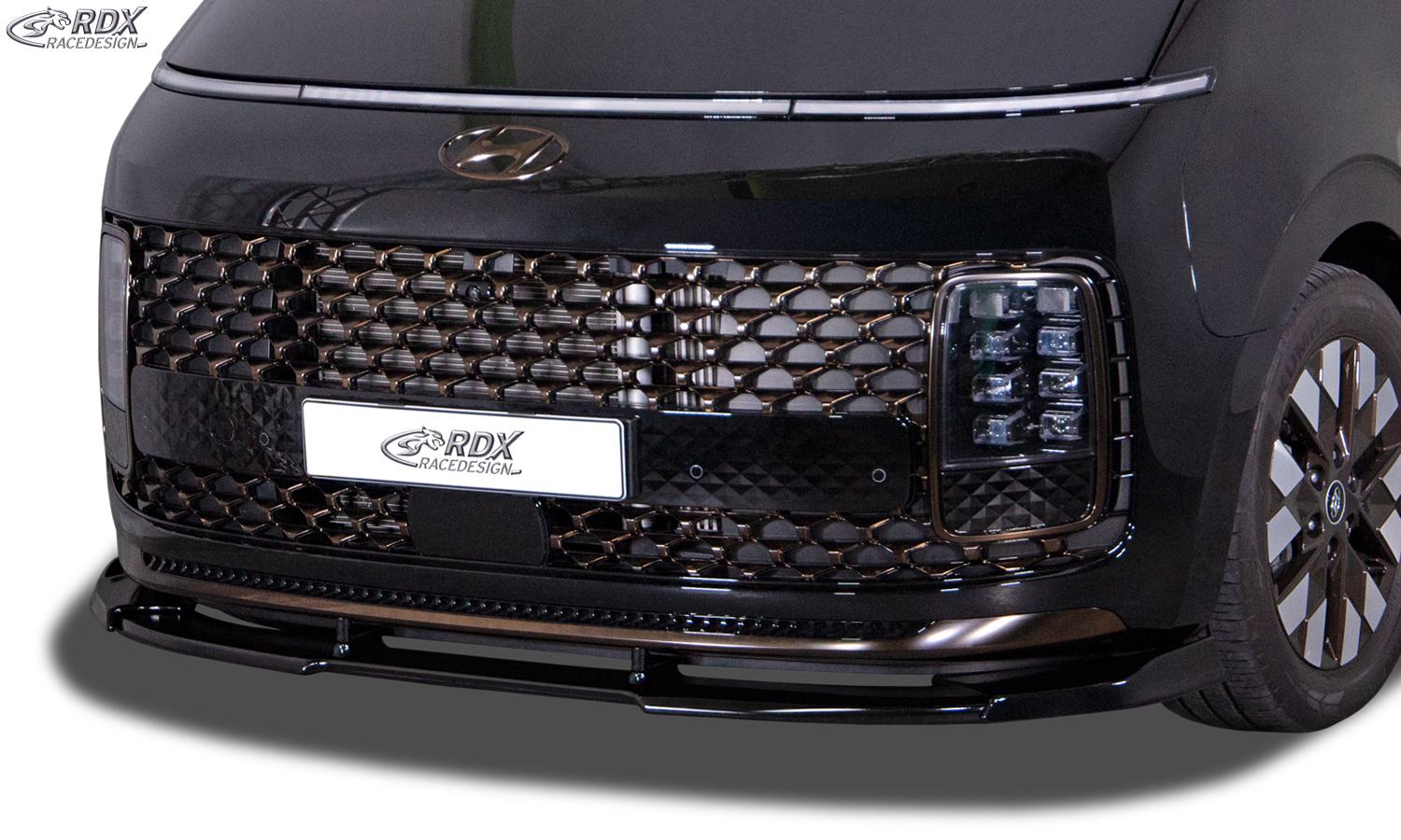 Der RDX VARIO-X Frontspoiler passend für Hyundai Staria (US4, ab 2021) verleiht Ihrem Fahrzeug eine sportlich-dynamische Optik und verbessert zugleich die Aerodynamik. Hergestellt aus hochwertigem PUR-Kunststoff (Polyurethan), überzeugt das Produkt durch hohe Bruchsicherheit und Langlebigkeit. Die Oberfläche ist unlackiert schwarz, lackierfreundlich und somit individuell anpassbar. Der 3-teilige Aufbau ermöglicht kreative Farbgestaltungen – beispielsweise in Kontrast- oder Wagenfarbe.