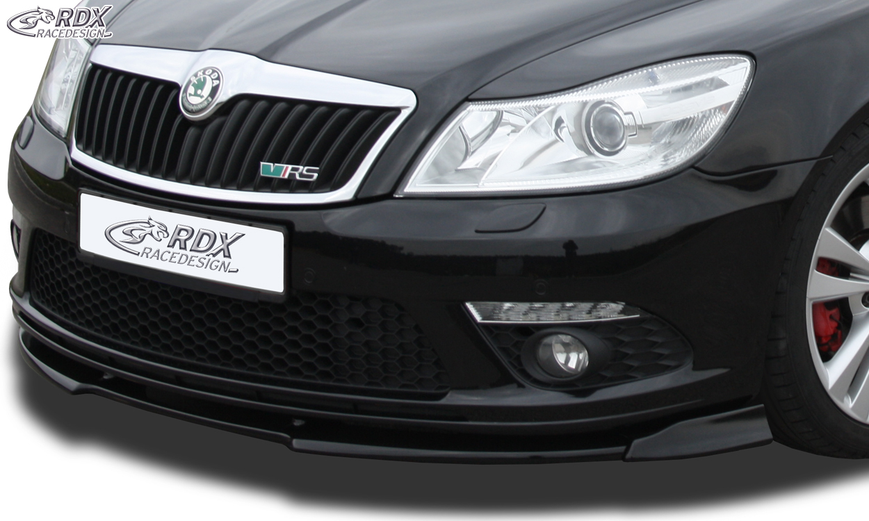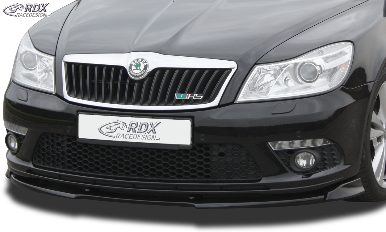 Der RDX VARIO-X Frontspoiler ist ein hochwertiges Aerodynamik-Bauteil passend für Skoda Octavia 2 RS Facelift Typ 1Z ab Baujahr 2008. Der innovative Spoiler besteht aus einem dreiteiligen System – zwei Seitenteile und ein Mittelteil – und wird als einteilige, montagefertige Einheit geliefert. Das verwendete PUR-Kunststoffmaterial (Polyurethan) entspricht Erstausrüsterqualität, ist besonders bruchsicher und besitzt eine lackierfreundliche Oberfläche. Dank seiner durchdachten Konstruktion kann der Spoiler individuell lackiert und farblich angepasst werden.