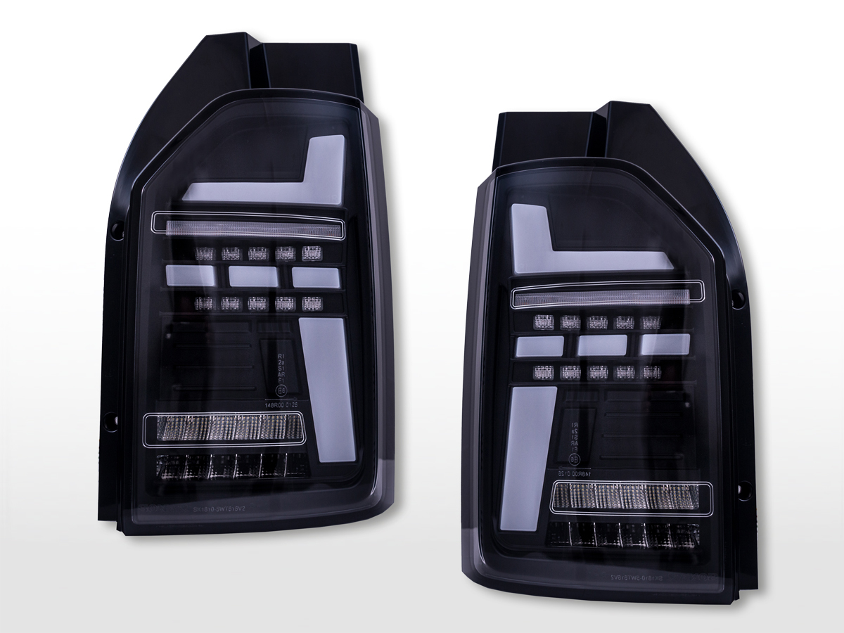 Das LED Rückleuchten Set passend für VW T6 überzeugt durch modernes Design in Schwarz und eine klare Funktionalität. Die Rückleuchten sind speziell für Fahrzeuge des Baujahrs 2016 bis 2019 mit Heckklappentür und originaler Glühlampenausstattung entwickelt worden. Dank der integrierten dynamischen LED-Blinker bieten sie nicht nur ein optisches Highlight, sondern auch eine verbesserte Signalwirkung im Straßenverkehr.