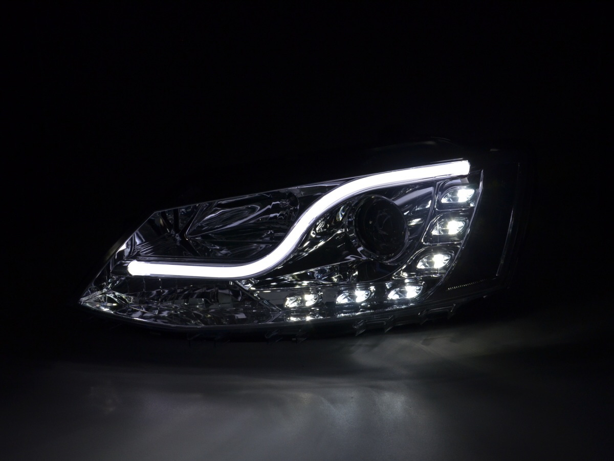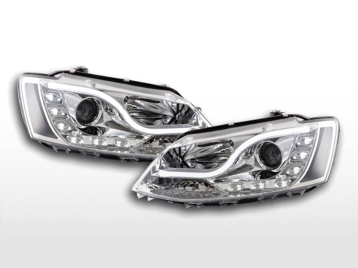 Dieses hochwertige Scheinwerfer Set mit moderner Daylight LED Tagfahrlicht-Optik bietet eine exklusive Aufwertung für Ihr Fahrzeug. Die Scheinwerfer sind speziell passend für VW Jetta 6 ab Baujahr 2011 entwickelt und überzeugen durch ihr elegantes Chrom-Design. Dank des integrierten E-Prüfzeichens sind sie eintragungsfrei und können ohne zusätzliche Genehmigung im Straßenverkehr verwendet werden. Die elektrische Leuchtweitenregulierung sowie die beiliegenden Stellmotoren sorgen für eine präzise Anpassung der Lichtverteilung und erhöhen die Fahrsicherheit. Das klare Lichtbild der LED-Standlichter verleiht Ihrem Fahrzeug eine moderne, sportliche Frontansicht, während die ausgezeichnete Verarbeitung eine lange Lebensdauer garantiert.