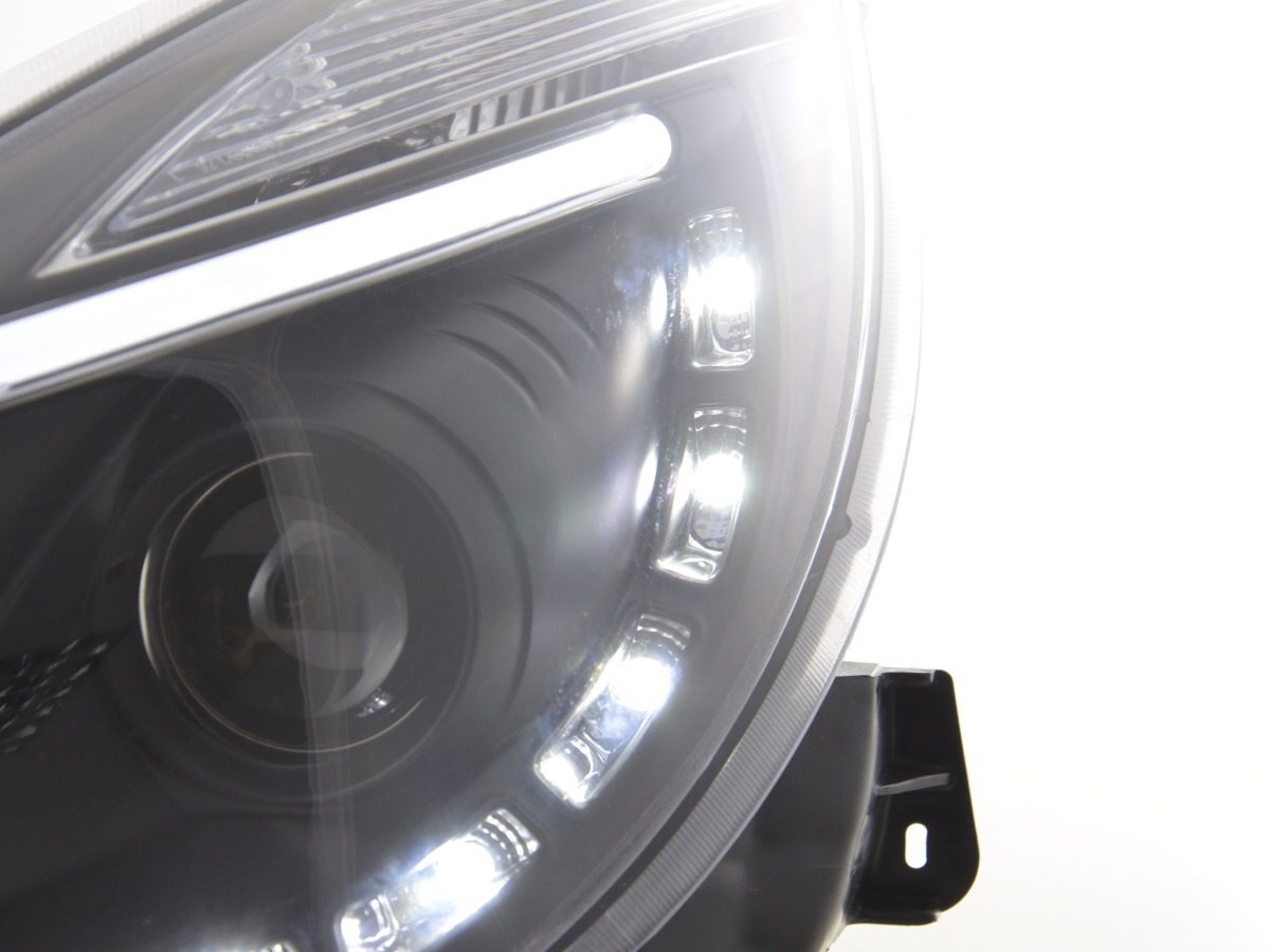 Das Scheinwerfer Set Daylight LED Tagfahrlicht passend für Opel Corsa D ab 2011 in Schwarz bietet eine moderne und sportliche Optik für Ihr Fahrzeug. Die klar strukturierte Daylight-LED-Technologie sorgt nicht nur für eine markante Lichtsignatur, sondern auch für bessere Sicht und mehr Sicherheit auf der Straße. Dank E-Prüfzeichen ist keine zusätzliche Eintragung erforderlich. Die elektrische Leuchtweitenregulierung ermöglicht präzise Anpassung des Lichtkegels an die Fahrsituation. Ideal für alle, die ihr Fahrzeug optisch aufwerten und gleichzeitig die Lichtleistung optimieren möchten.