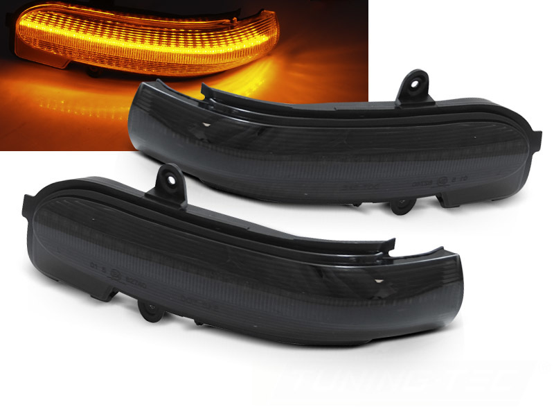 Die hochwertigen LED Spiegelblinker in getönter Ausführung verleihen Ihrem Fahrzeug ein modernes und sportliches Erscheinungsbild. Dank der dynamischen Lauflicht-Funktion erhöhen sie zusätzlich die Sichtbarkeit und Sicherheit im Straßenverkehr. Die Blinker werden paarweise (links und rechts) geliefert und sind mit einer E4-Prüfnummer versehen, wodurch sie im Straßenverkehr zugelassen sind. Entwickelt speziell für Modelle der Mercedes C-Klasse der Baureihen W203, T203 und CL203, ist der Austausch einfach und erfolgt ohne Anpassungsarbeiten – direkt passend für die originalen Spiegelgehäuse.